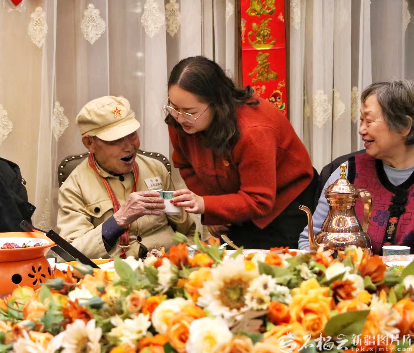天山网-新疆日报讯(记者王立华摄影报道)2月16日晚,除夕之夜,库尔勒市西域胡杨餐厅内暖意融融、欢声笑语。梨香园社区组织抗美援朝老战士、孤寡老人及居民代表20余人欢聚一堂,共度除夕、喜迎马年新春。