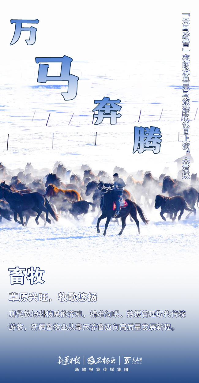 绘奋进画卷,展蓬勃气象。从沃野千里到风光无限,从能源脉动到织锦华章,从草原欢歌到大道通衢,从开放前沿到发展高地 ——一马当先、万马奔腾、快马加鞭……这是新疆书写新时代高质量发展的昂扬篇章!