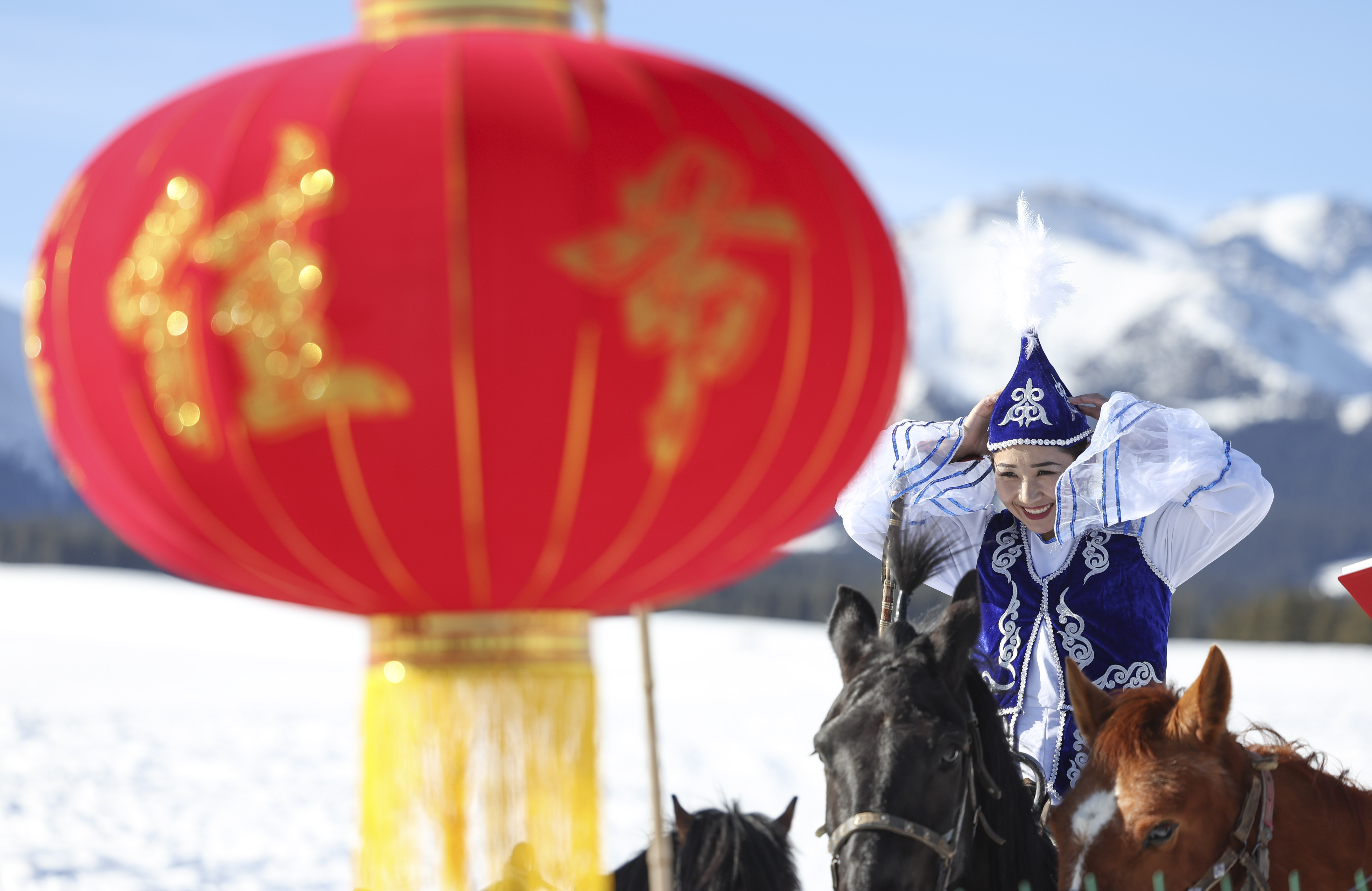 2026年2月17日,在新疆青河县狼山景区赛马场,当地群众身着盛装开展传统马上运动欢度新春佳节。新华社发(叶尔江·木哈买提 摄)
