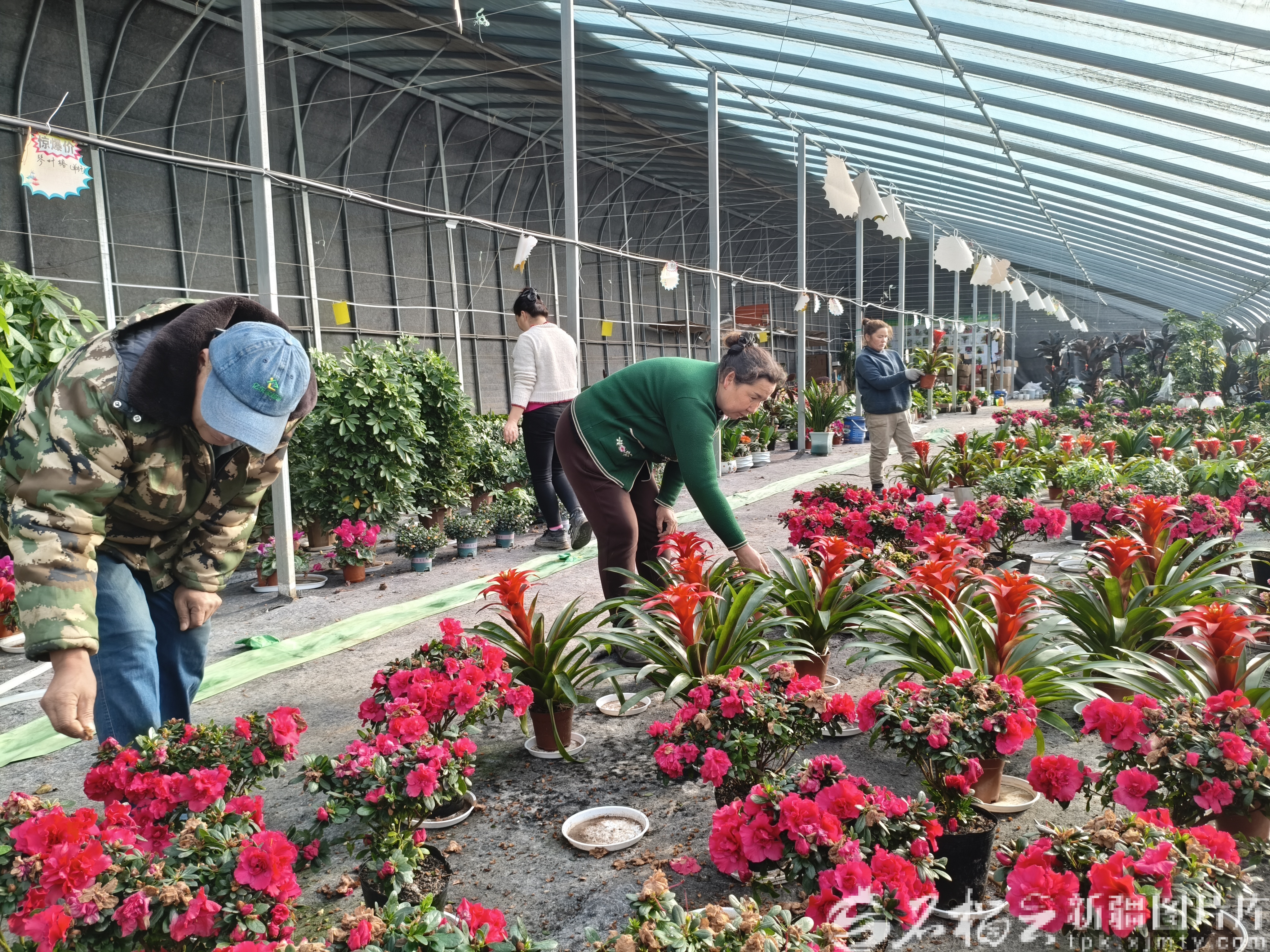 “大棚采用自动喷淋加人工精细浇灌,温度严格控制在18℃—25℃,确保花卉长势旺盛。”巴州春色满园园林绿化有限公司董事长王书义说,从春节前开始,前来买花、赏花的居民络绎不绝。