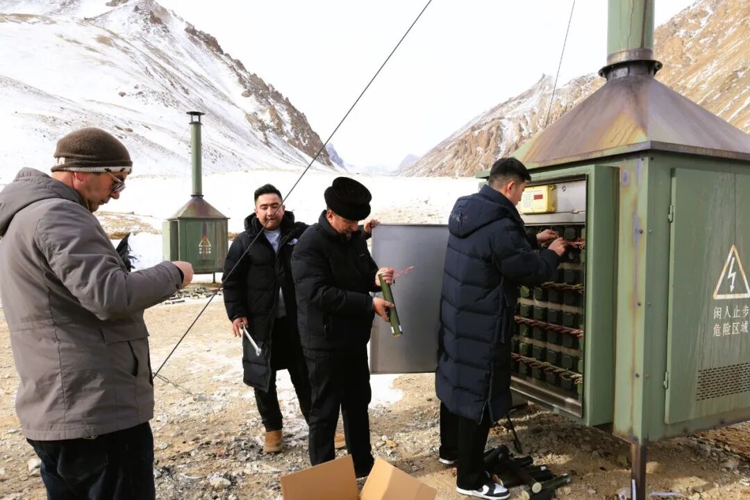 2月10日,塔什库尔干塔吉克自治县气象局工作人员前往海拔4103米的塔提库里人工影响天气烟炉站检修设备、更换烟条。
