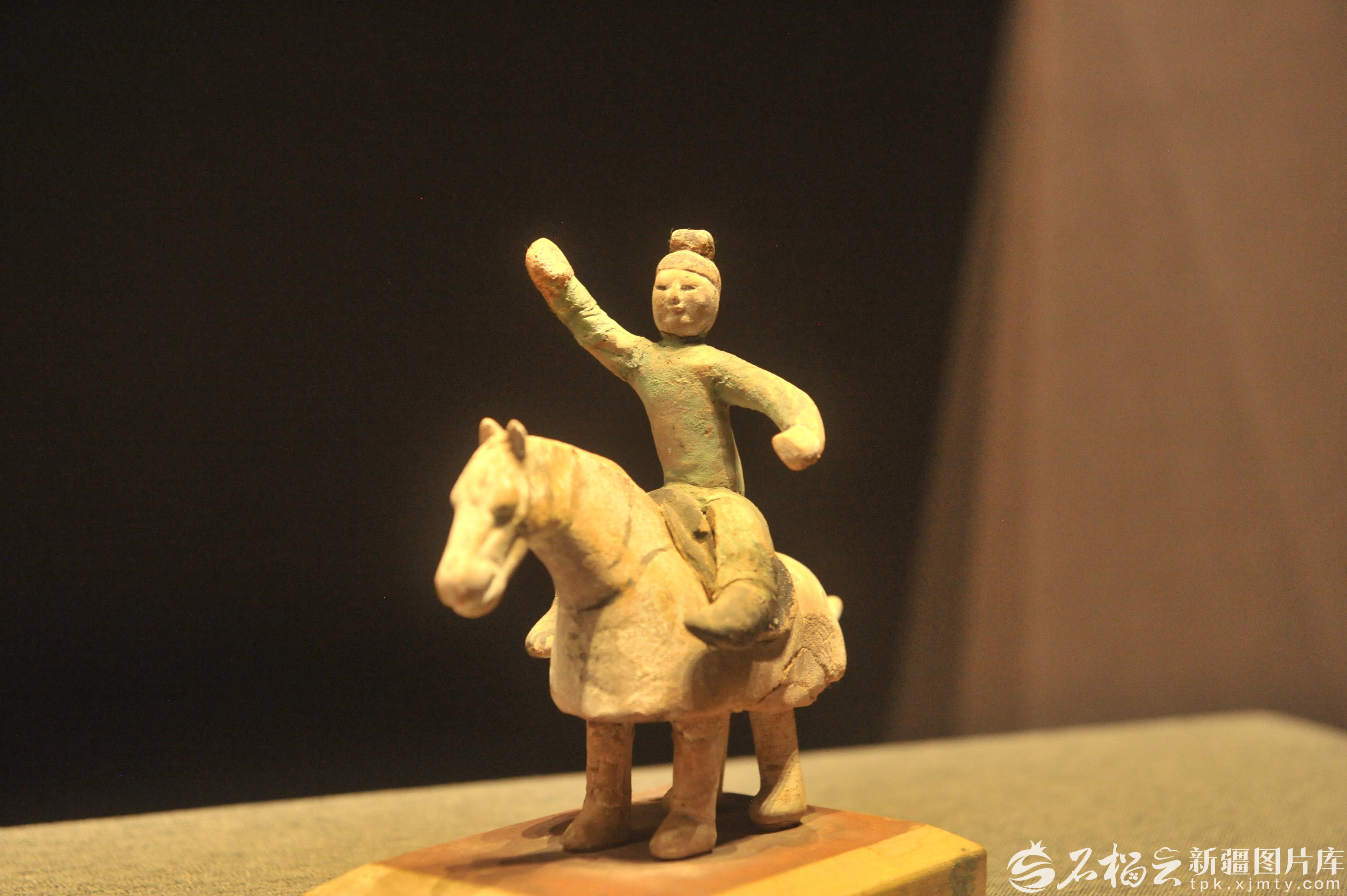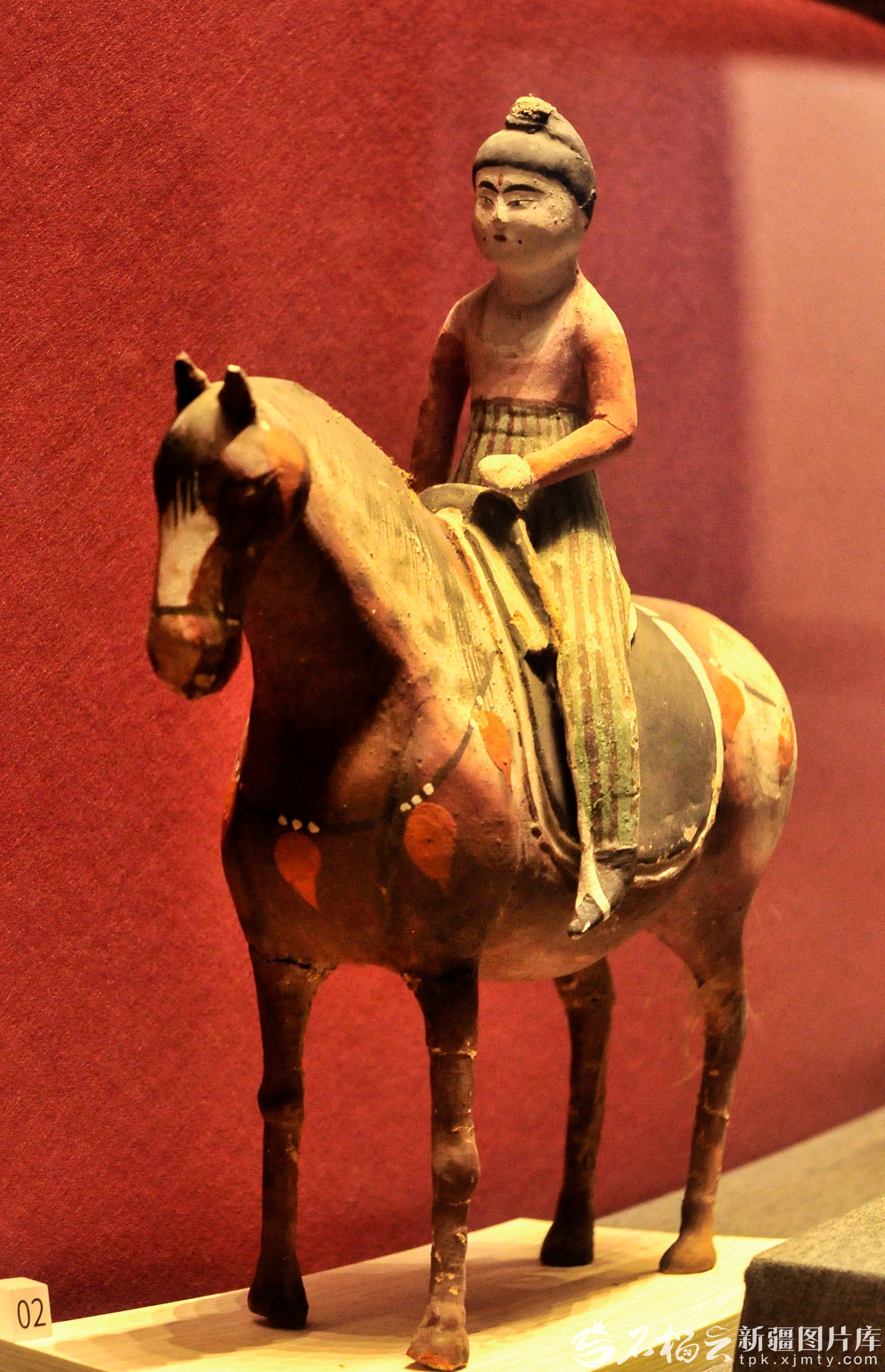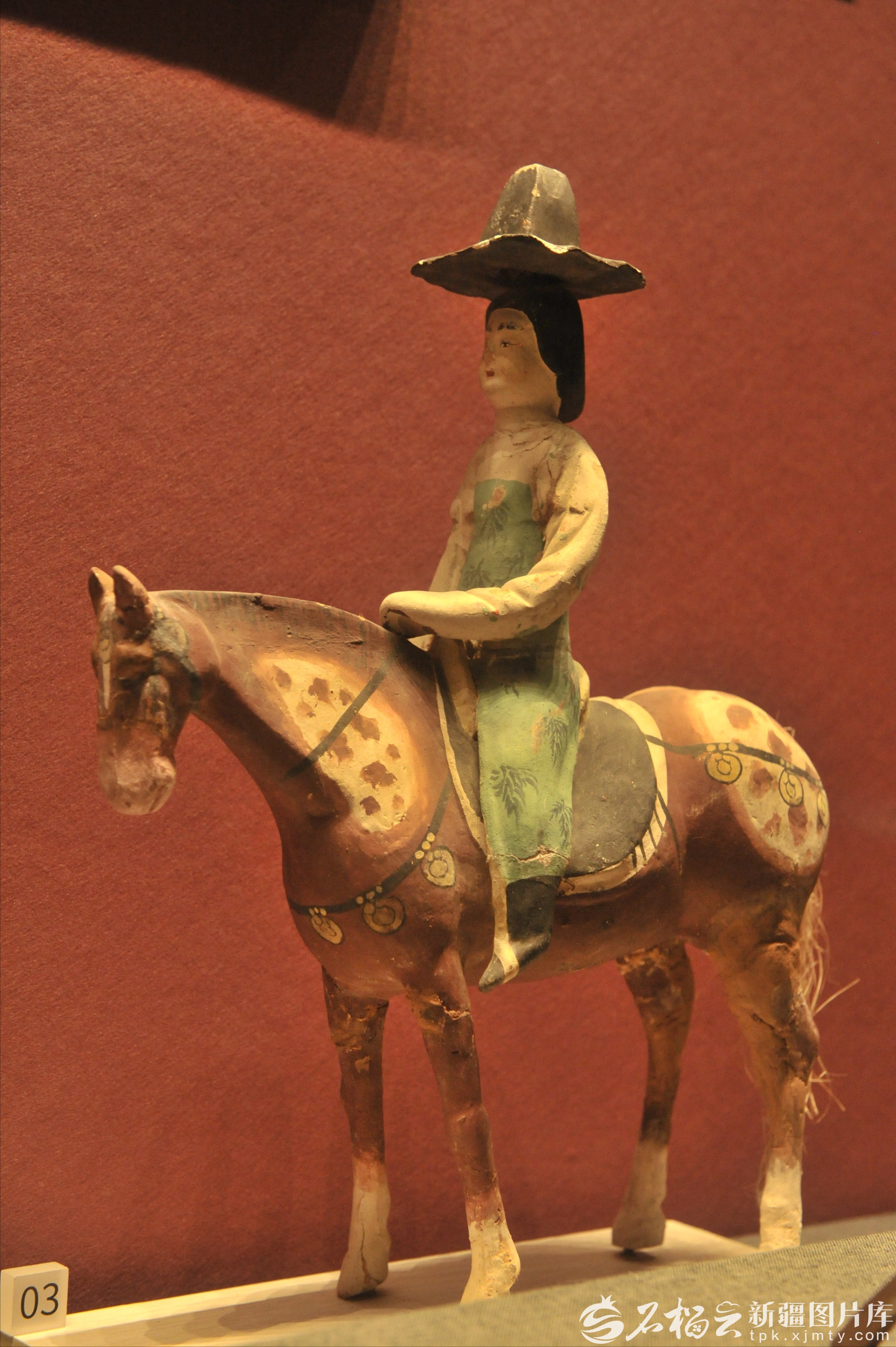 唐代彩绘骑马女俑,出土于吐鲁番阿斯塔那墓葬,现收藏于新疆博物馆。