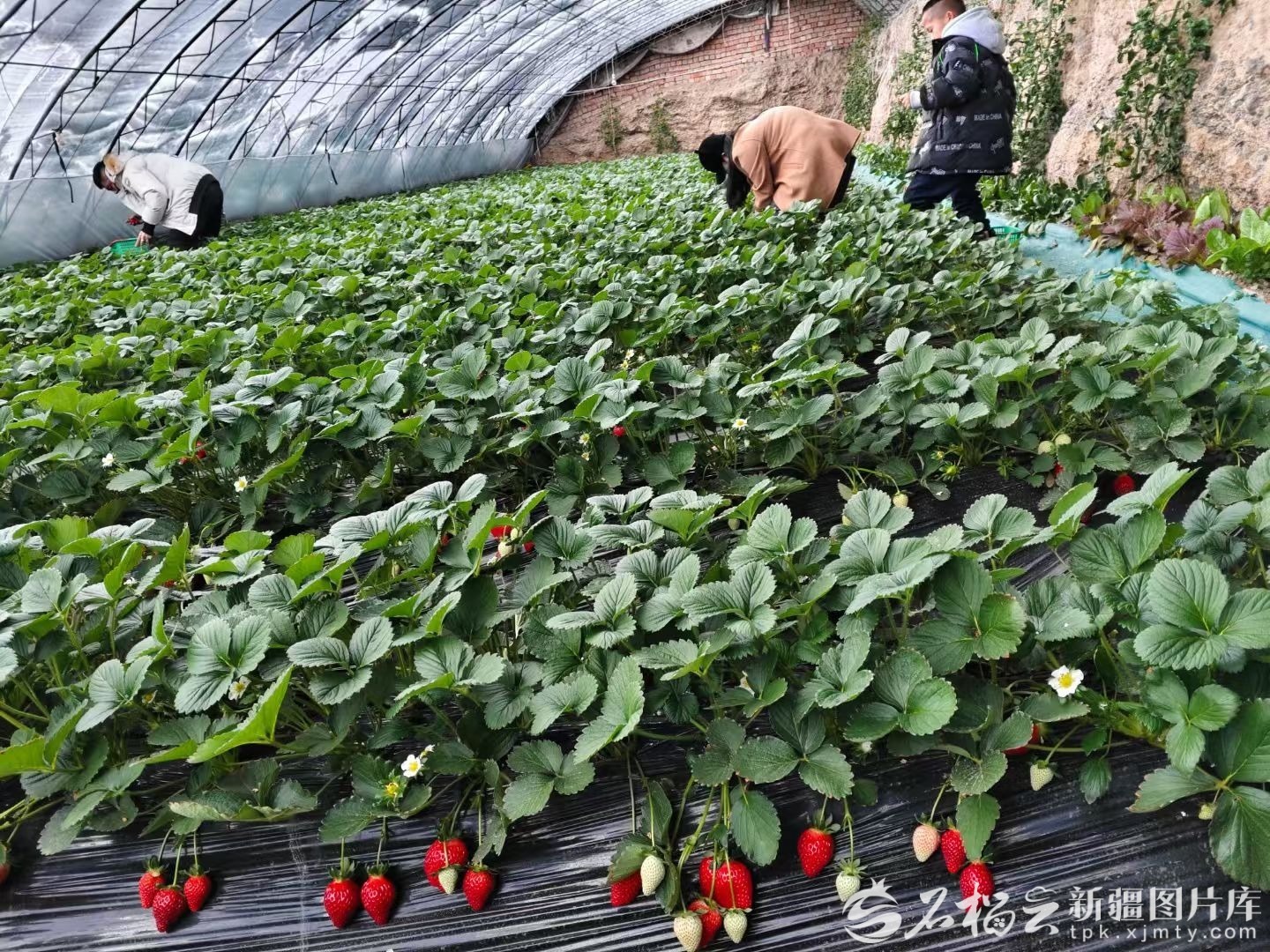 说话间,村民周功翠带着几位刚滑完雪的游客走了进来。他们脱下外套,拿起小篮子俯身采摘,欢声笑语填满大棚。
