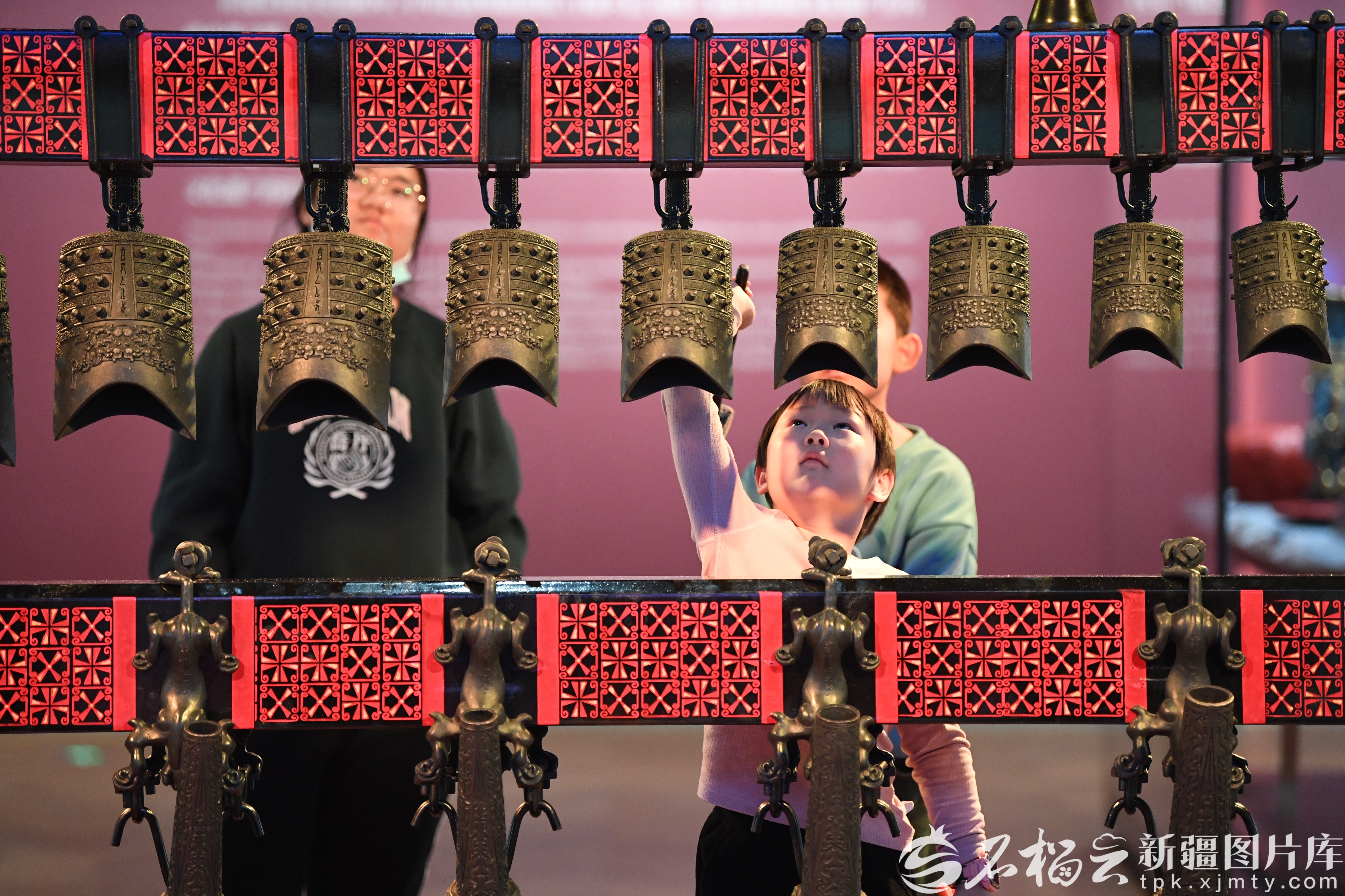 2月20日,小朋友在新疆非物质文化遗产馆体验编钟演奏。春节假期,众多市民与游客走进位于乌鲁木齐市的新疆非物质文化遗产馆,赏非遗、品年俗、学技艺,感受中华优秀传统文化的魅力。天山网-新疆日报记者 汤永摄