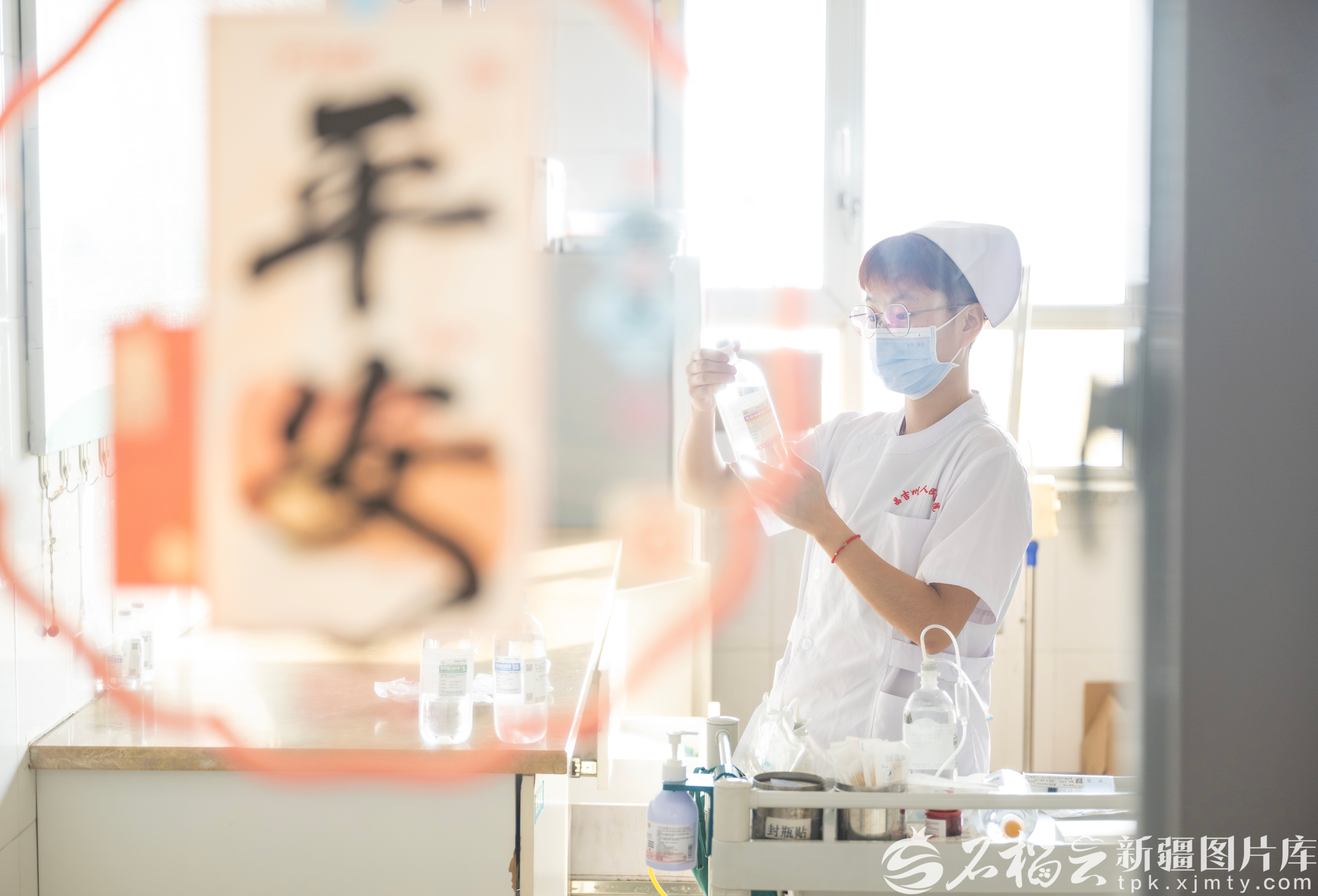 2月17日,昌吉回族自治州人民医院产科住院部,护士在配药室配药。春节期间,医护人员坚守岗位,以责任与爱心守护新生儿健康平安。何龙摄