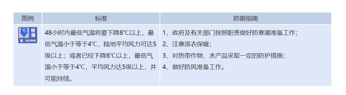 2月22日18时48分,塔城地区气象台发布寒潮蓝色预警信号。受冷空气活动影响,预计未来48小时内,塔城地区北部塔城市、额敏县、裕民县、托里县、和布克赛尔蒙古自治县及兵团第九师各团场最低气温将下降10℃左右,有寒潮出现,需提前做好各项防范工作。