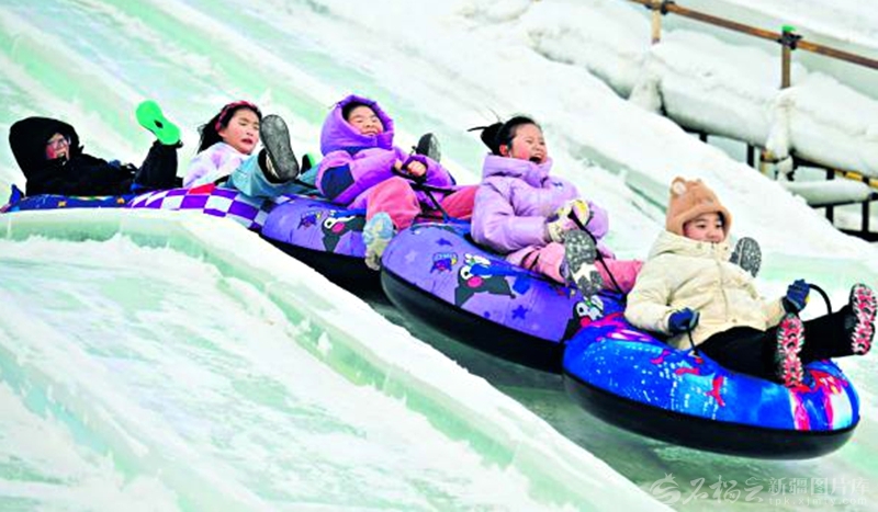 2月19日,小朋友在昌吉庭州生态绿谷冰雪乐园滑雪圈。春节假期,很多市民走进冰雪乐园,体验冰雪乐趣,乐享假日时光。 何龙摄