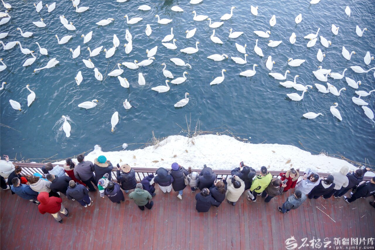 2月21日,游客在玛纳斯县湿地公园观赏天鹅。杨斌摄