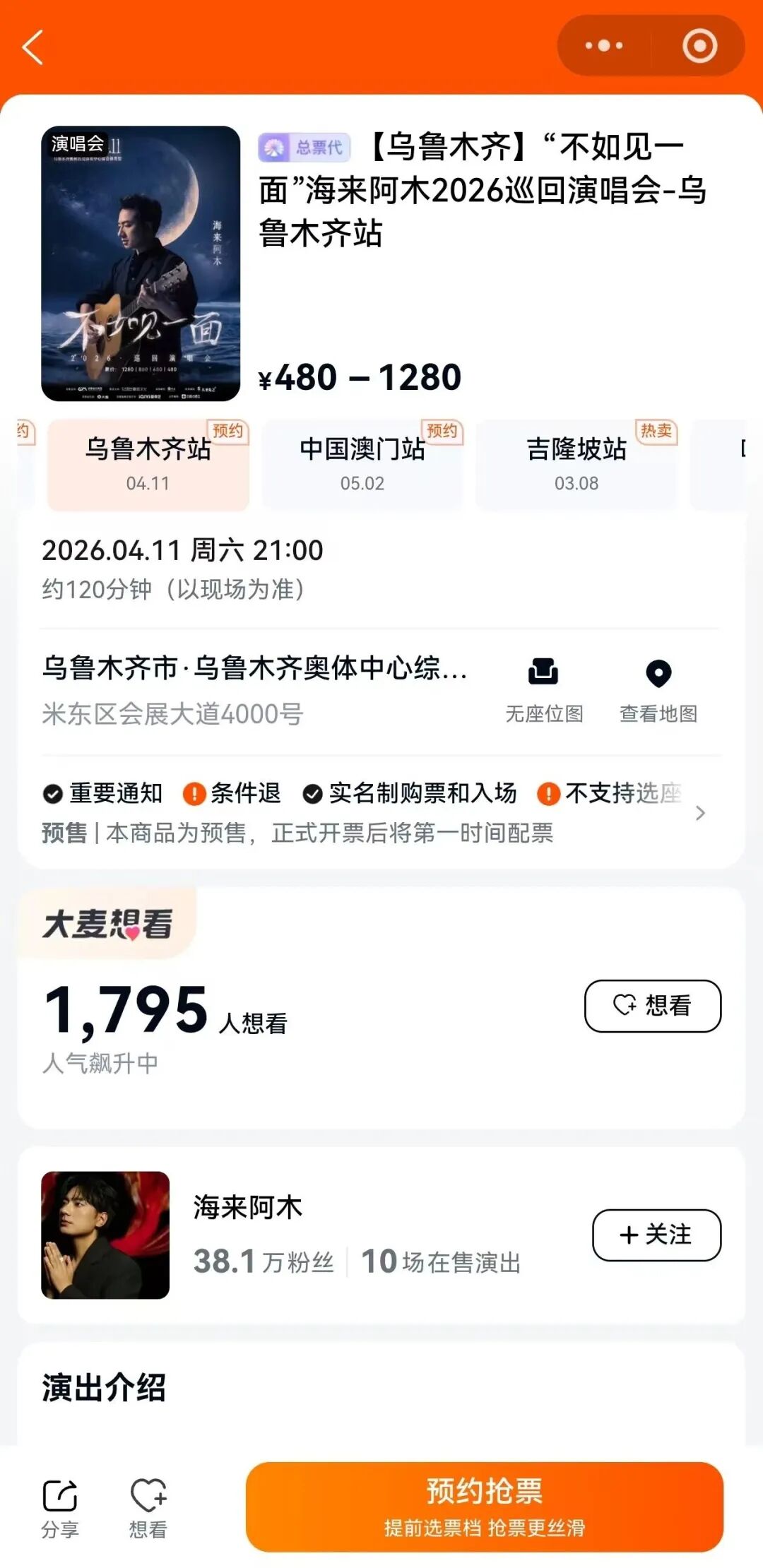 在大麦购票小程序可预约抢票