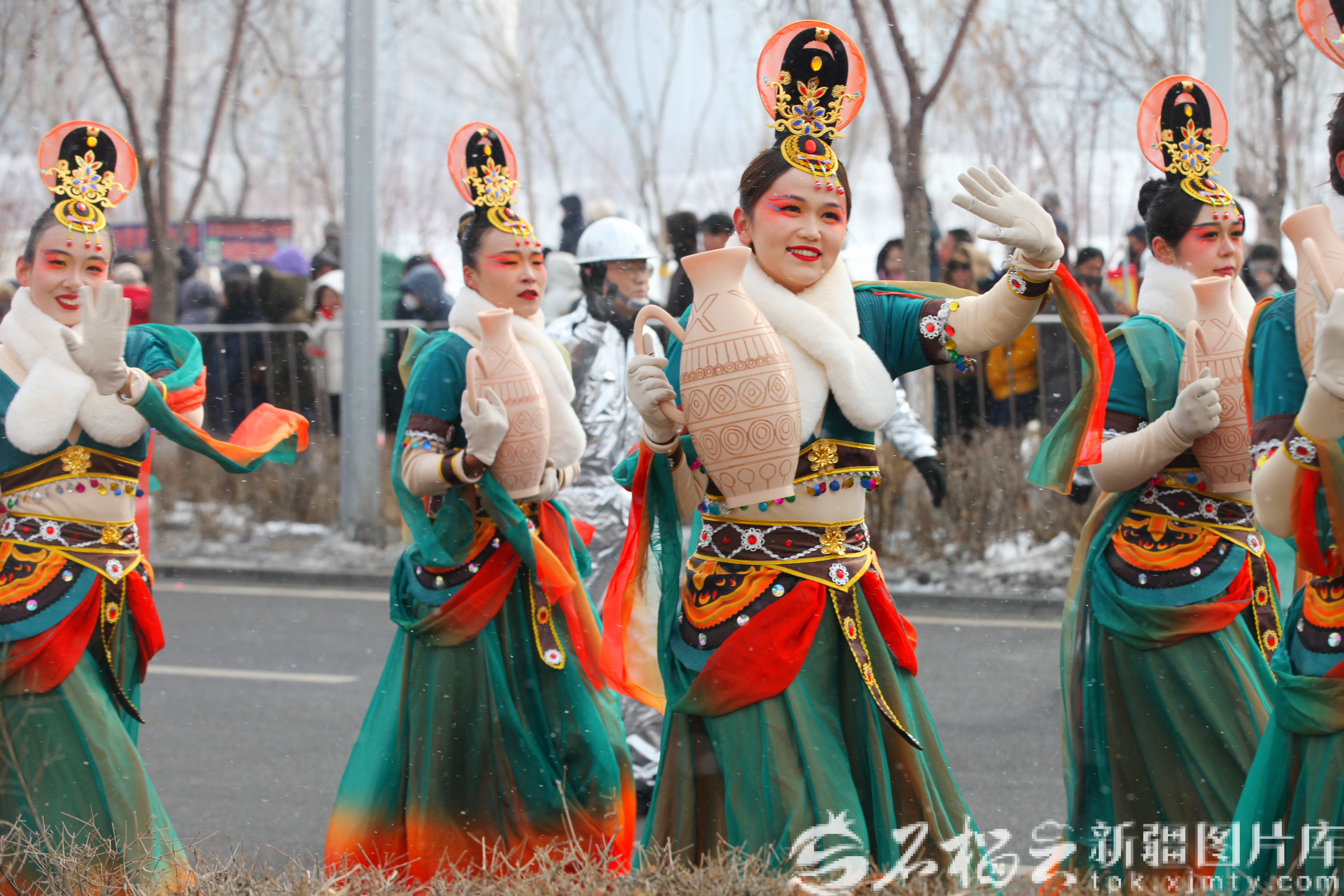 2月26日,乌鲁木齐市水磨沟区盛世欢歌社火队巡游表演。李林墨摄