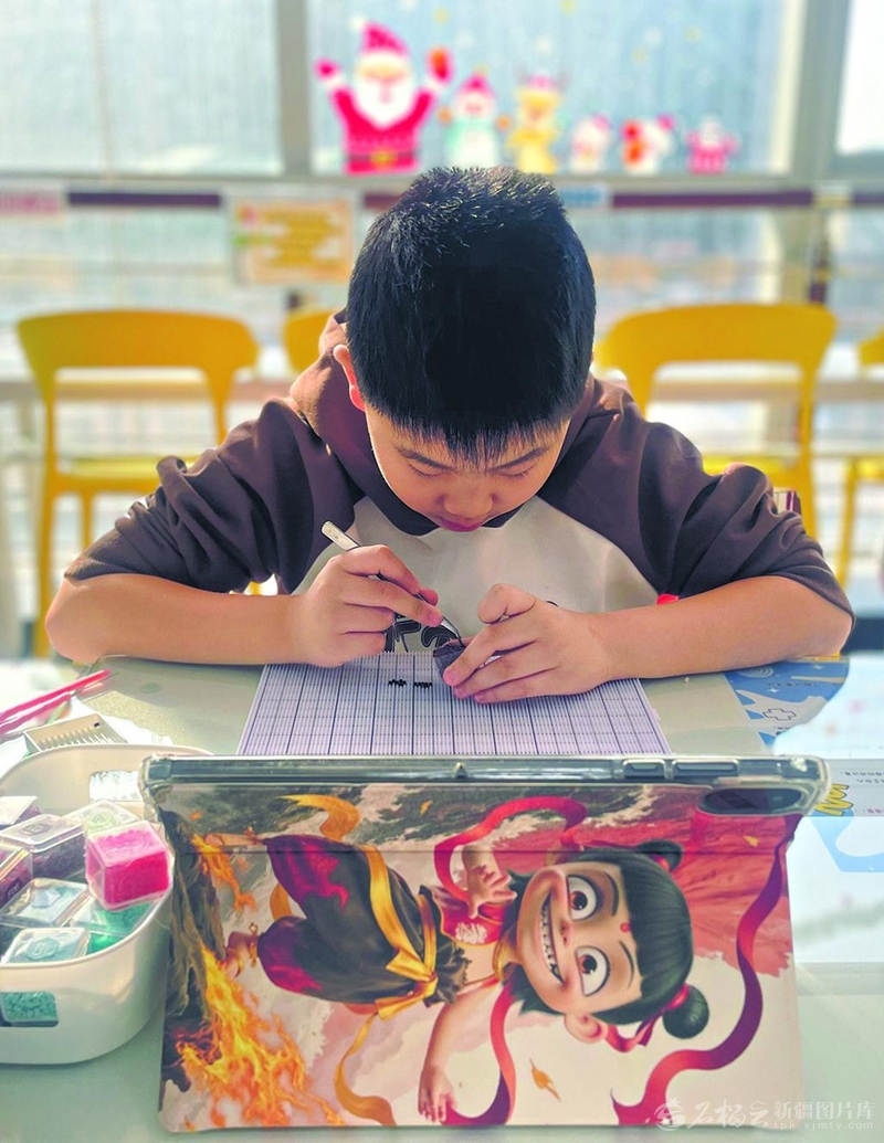 2月26日上午,走进位于乌鲁木齐市天山区的鲁班大师造物社,安静而专注的氛围扑面而来。几位00后正聚精会神地玩拼豆,色彩缤纷的小颗粒在他们指尖有序排列,选图、拼贴、熨烫,一系列动作娴熟流畅。不一会儿,一个个小巧精致、充满艺术感的挂件、冰箱贴、钥匙扣便跃然眼前。大家沉浸在手作的快乐中,用低成本、高成就感的方式,为心灵寻得一片宁静的栖息地。