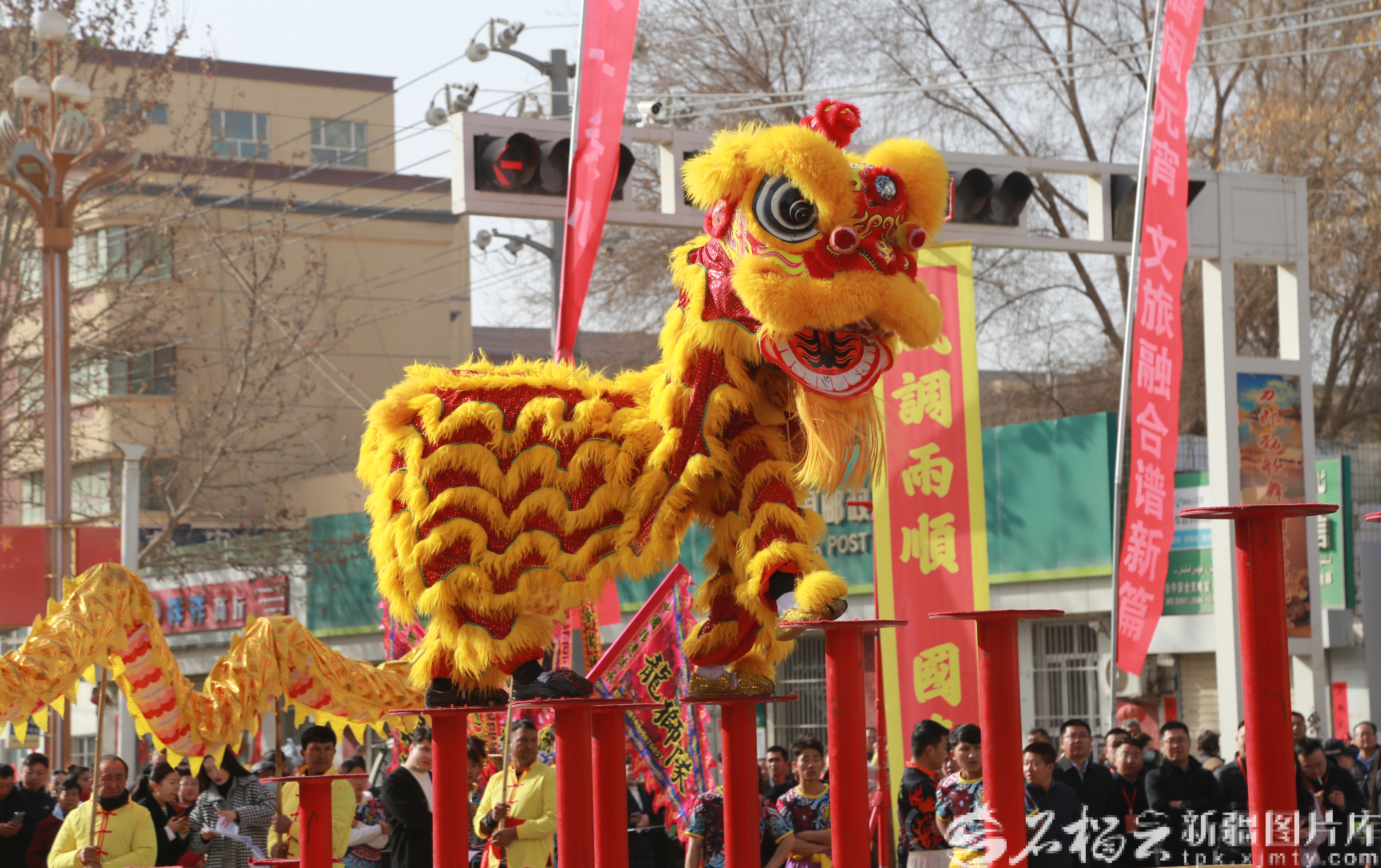 3月1日,新疆生产建设兵团第五师86团举办“非遗闹新春 骏马跃新程 ”千人社火展演活动,来自全团各单位的10支社火队1000余人参演,各族群众在热闹喜庆的氛围中欢度佳节、共迎新春。吕现领摄