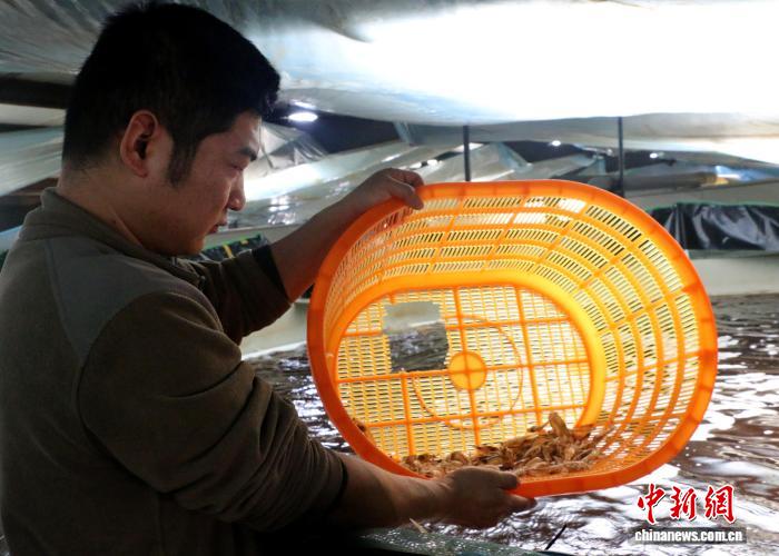 中新网乌鲁木齐3月4日电 (史玉江 王茹)经过数月的反复试验,新疆新星市首批南美白对虾迎丰收,于元宵节正式上市,为消费者送上一份来自戈壁的“鲜甜馈赠”。