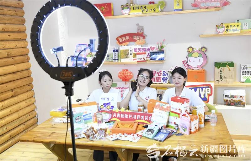 2024年8月27日,志愿者在哈巴河县齐巴尔镇吉林新村通过网络平台销售当地特色农产品(资料图)。石榴云/新疆日报记者 汤永摄