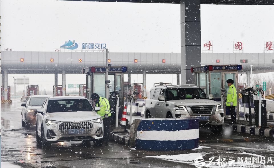 3月11日,呼图壁县出现雨雪天气,该县公安局交通管理大队在西域春交通执法站,对过往车辆驾驶员进行安全驾驶提醒。刘玉洁摄