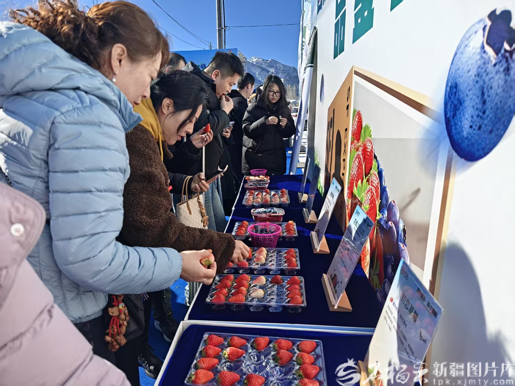 3月13日,推介会现场,嘉宾正在品尝草莓、蓝莓。 天山网-新疆日报 记者 范琼燕摄