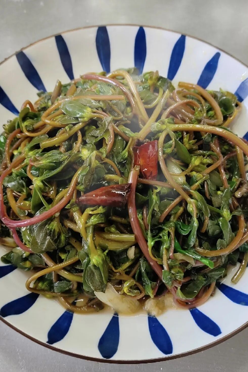 洗净的马齿苋下锅爆炒