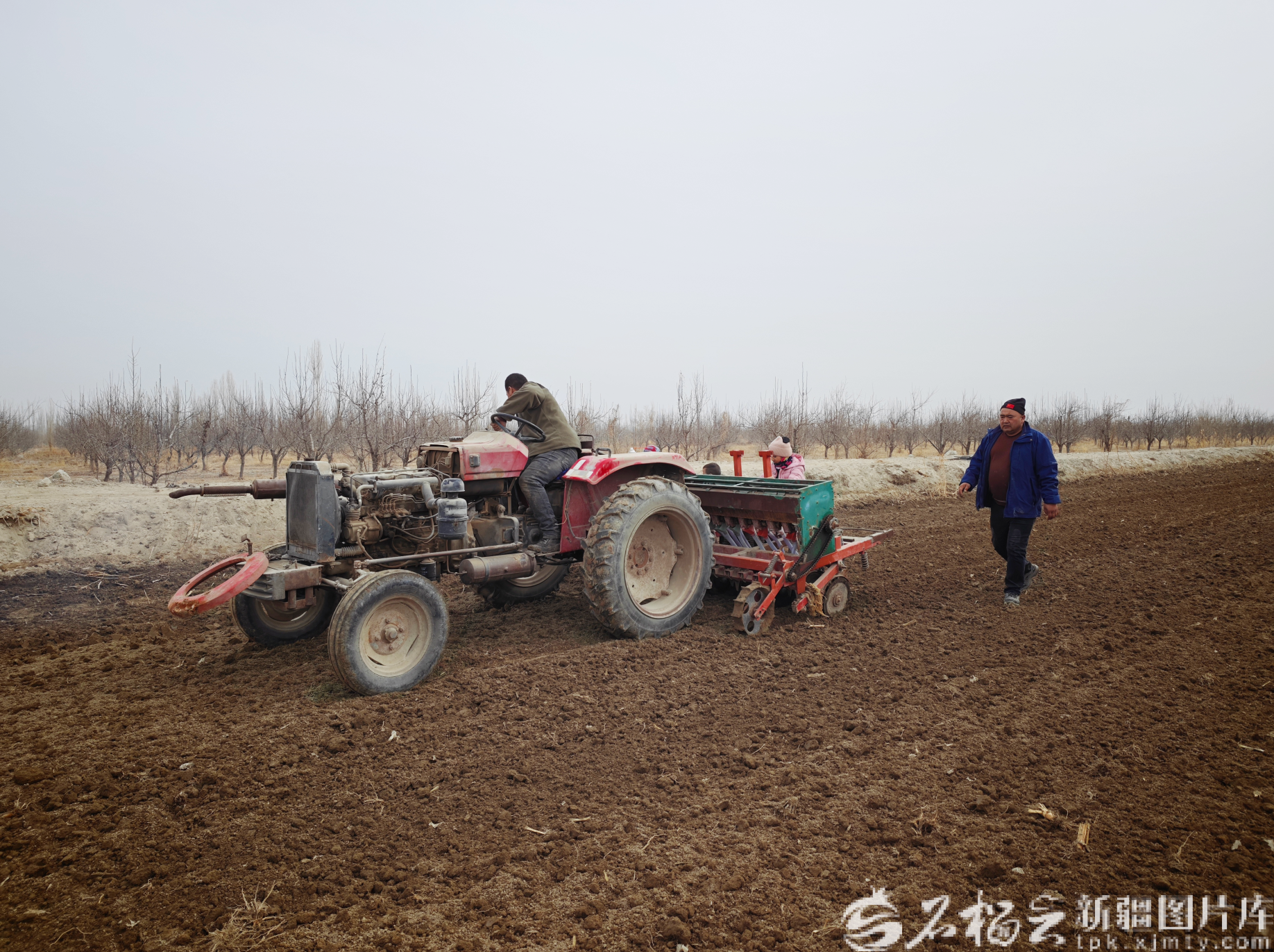 3月9日,在库尔勒市和什力克乡的农田里,农户驾驶农机播种春小麦。阿米娜・依明 摄