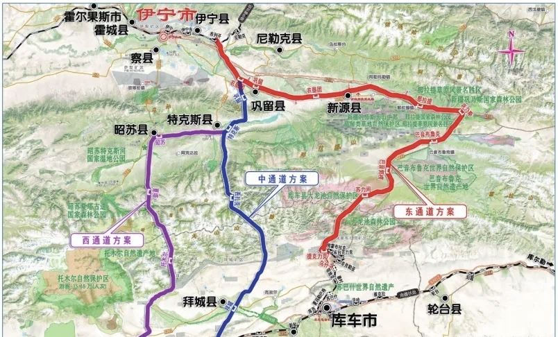 伊宁至阿克苏铁路走向示意图。图片来源:铁道发展动态微信公众号。