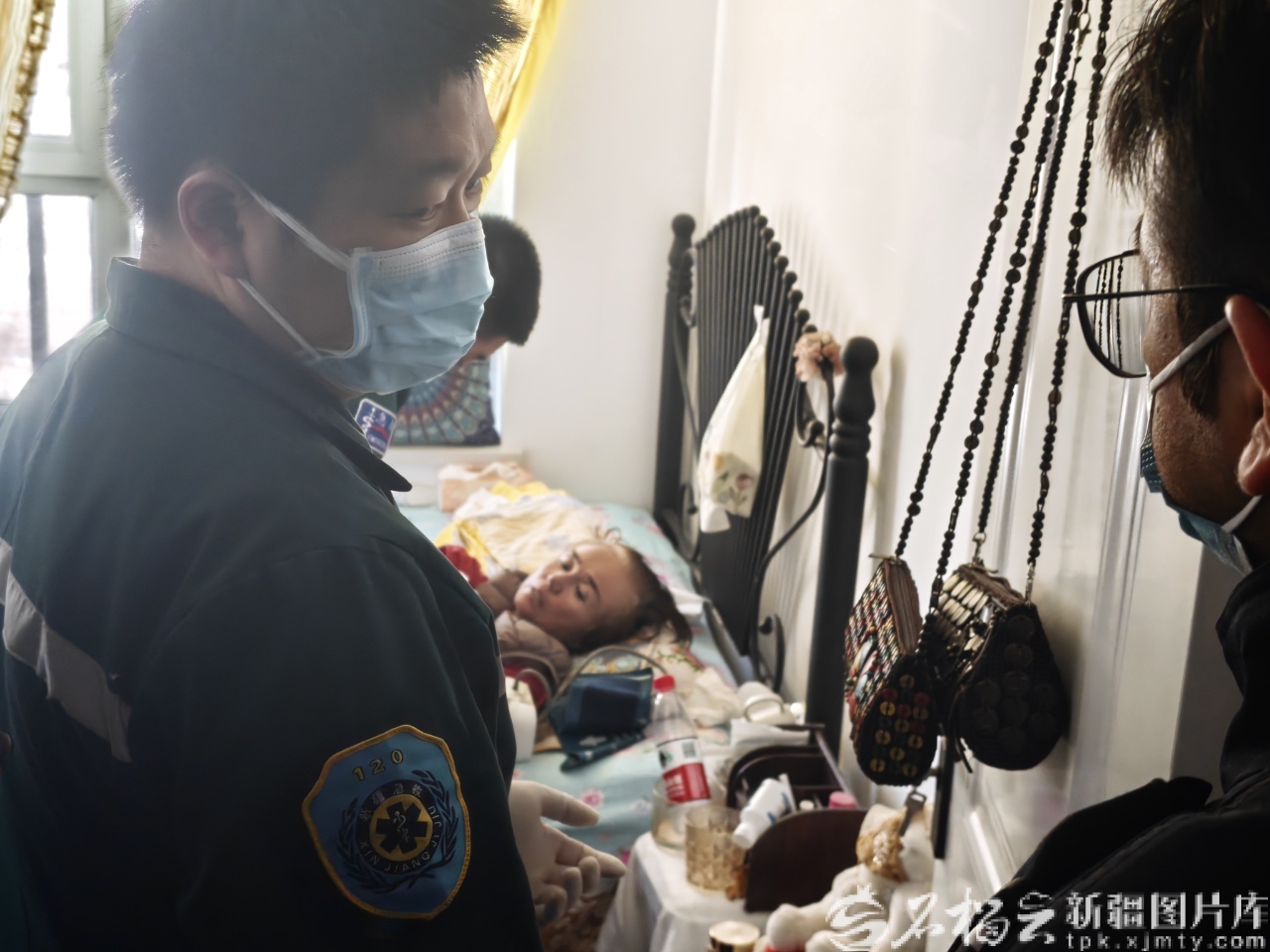 “阿恰(阿姨),我来了。”阿迪莱快步走到床边,用手背碰了碰老人的额头。克日买声音微弱地告诉阿迪莱,“难受、头晕、喘不上气……”