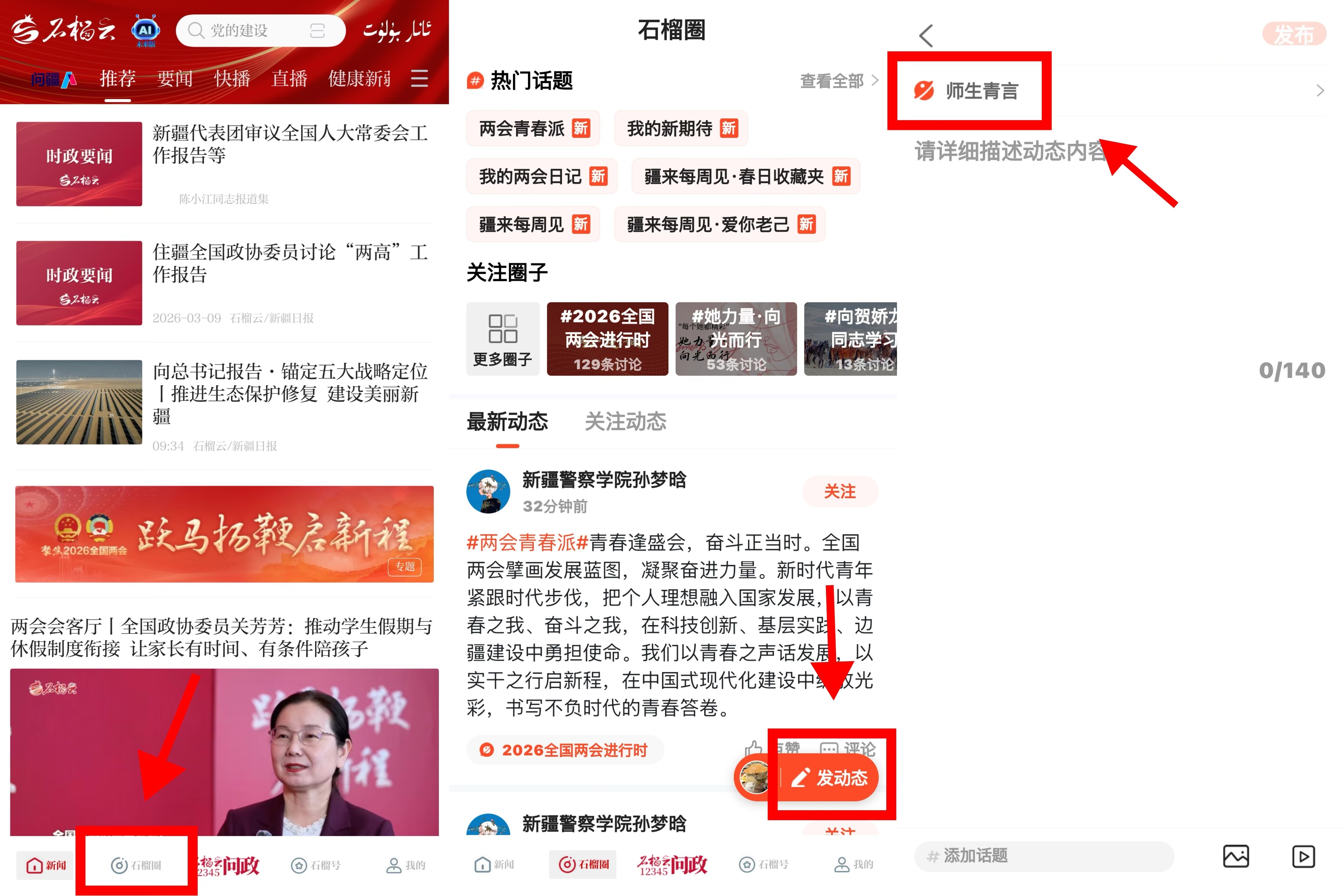 在石榴云客户端“石榴圈”的“师生青言”圈子中,你可以随时发布短评或学习感想。主办方每月将从互动用户中随机抽取50名师生送出纪念奖品,让每一次思想的碰撞都有回响。