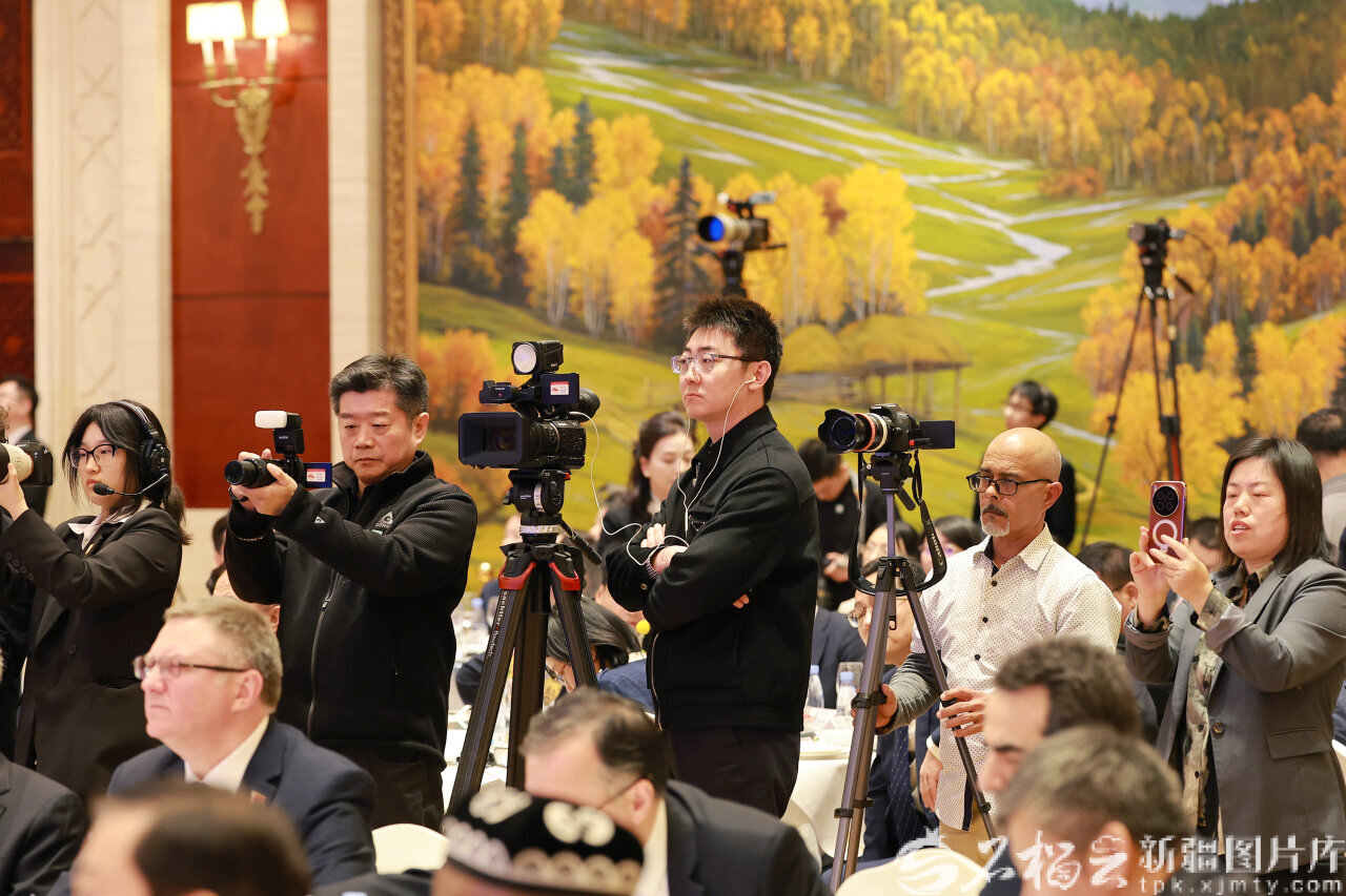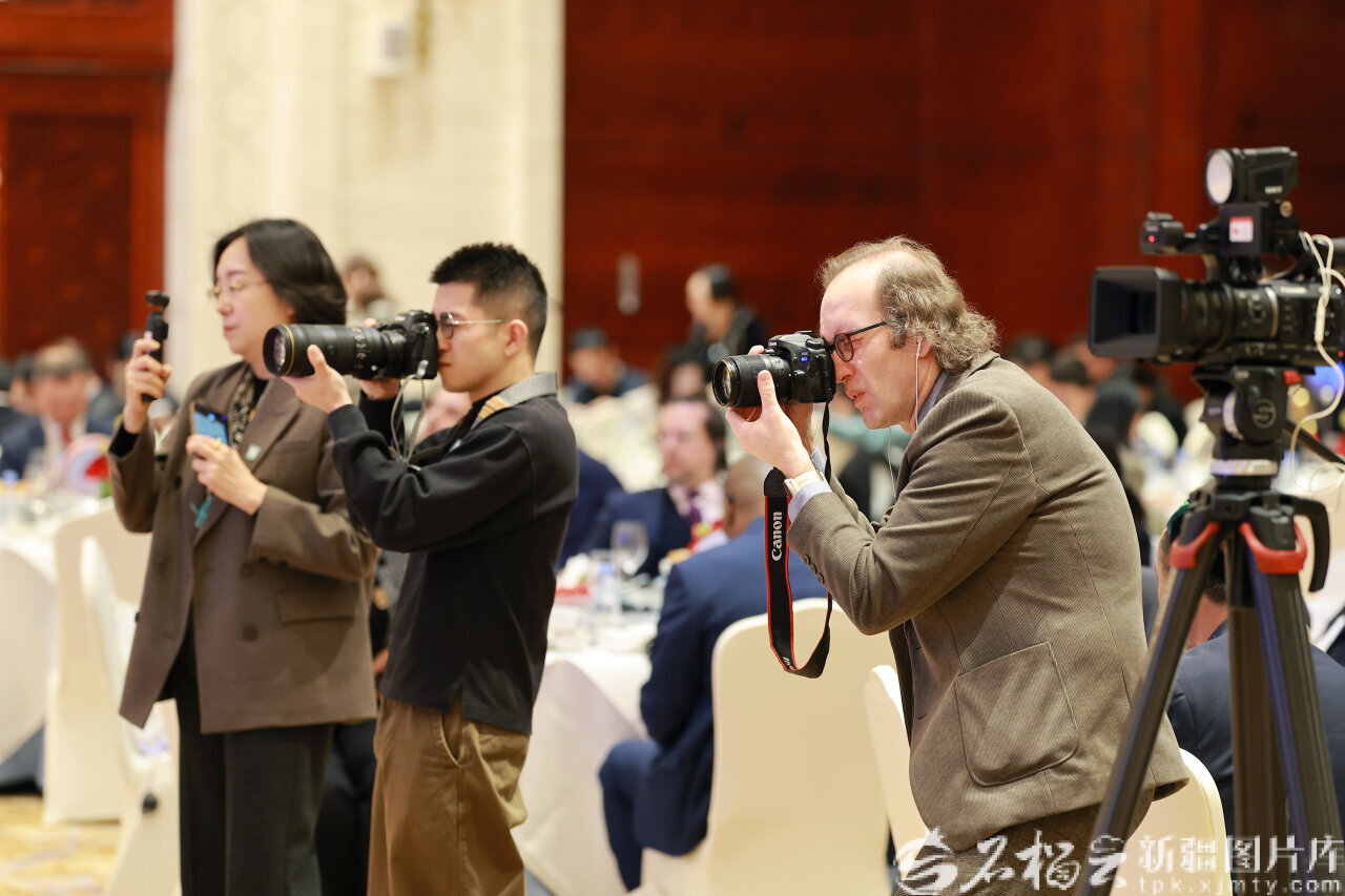 3月20日,中外媒体在有关国家驻华使节交流会上采访拍摄。石榴云/新疆日报记者 崔志坚摄