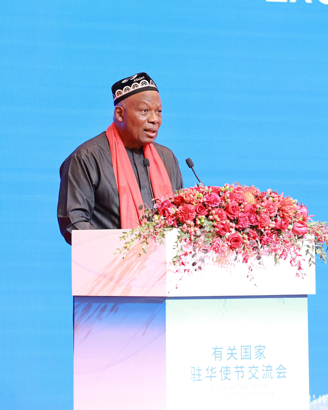 喀麦隆驻华大使马丁·姆巴纳作交流发言。石榴云/新疆日报记者 崔志坚摄