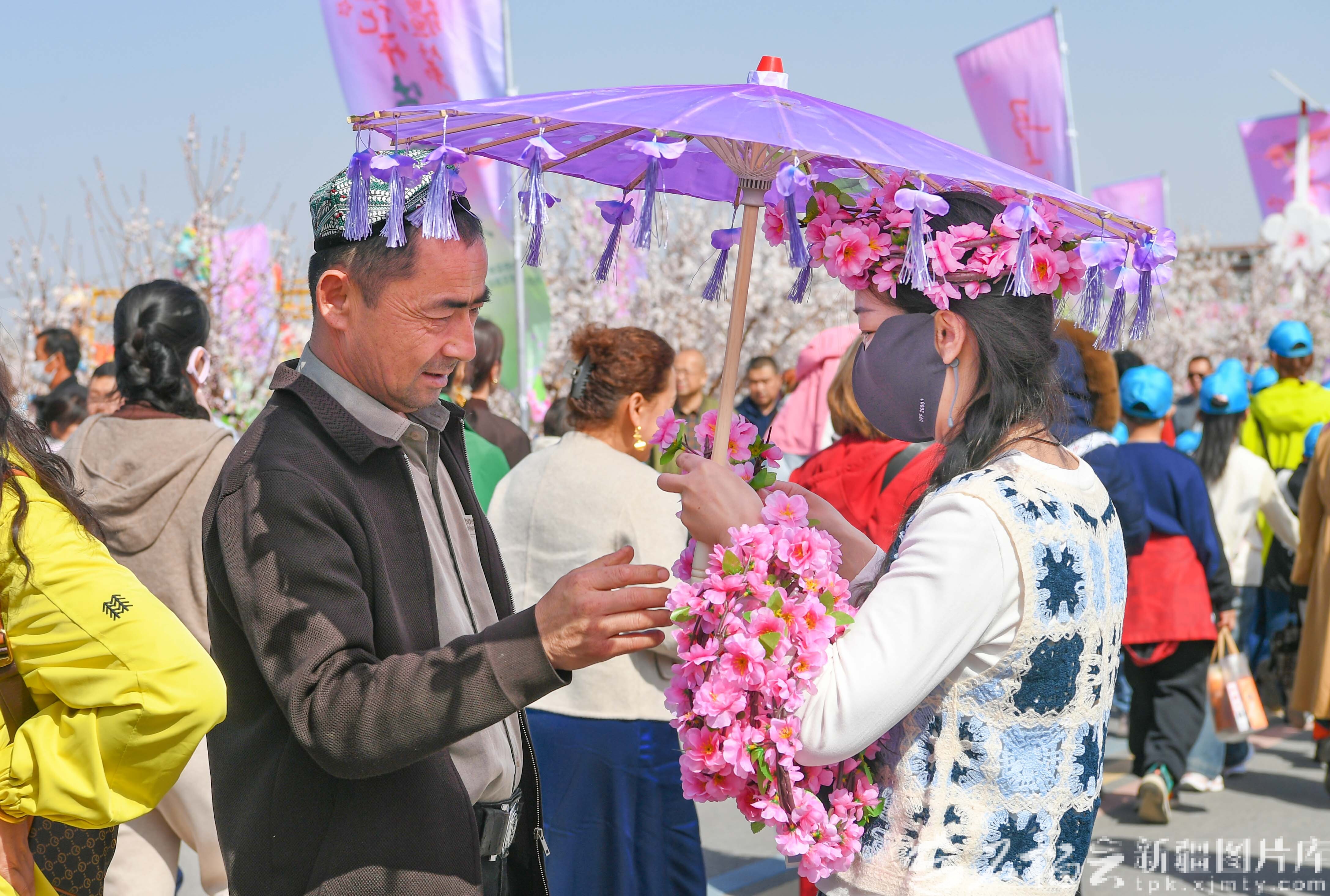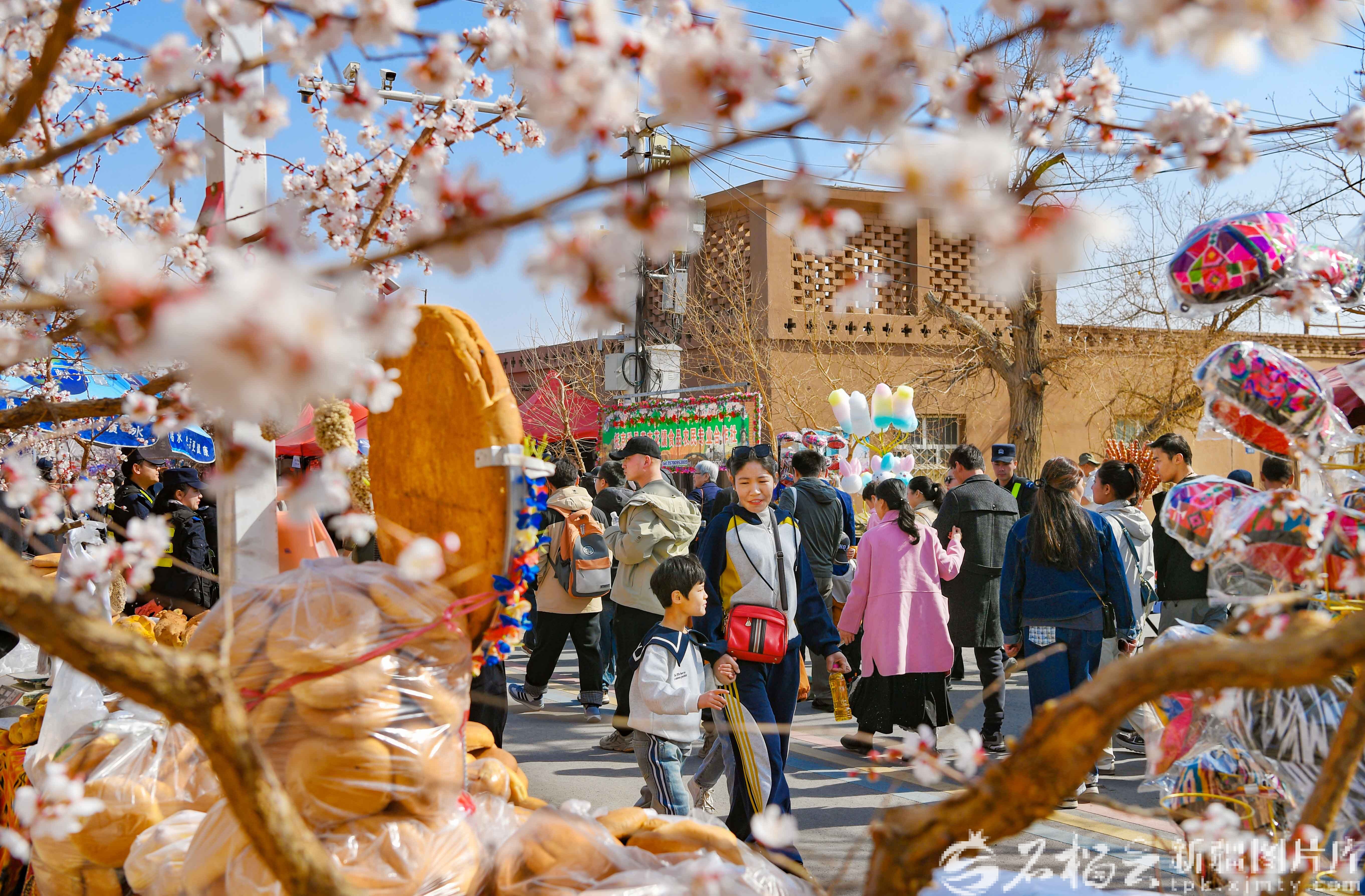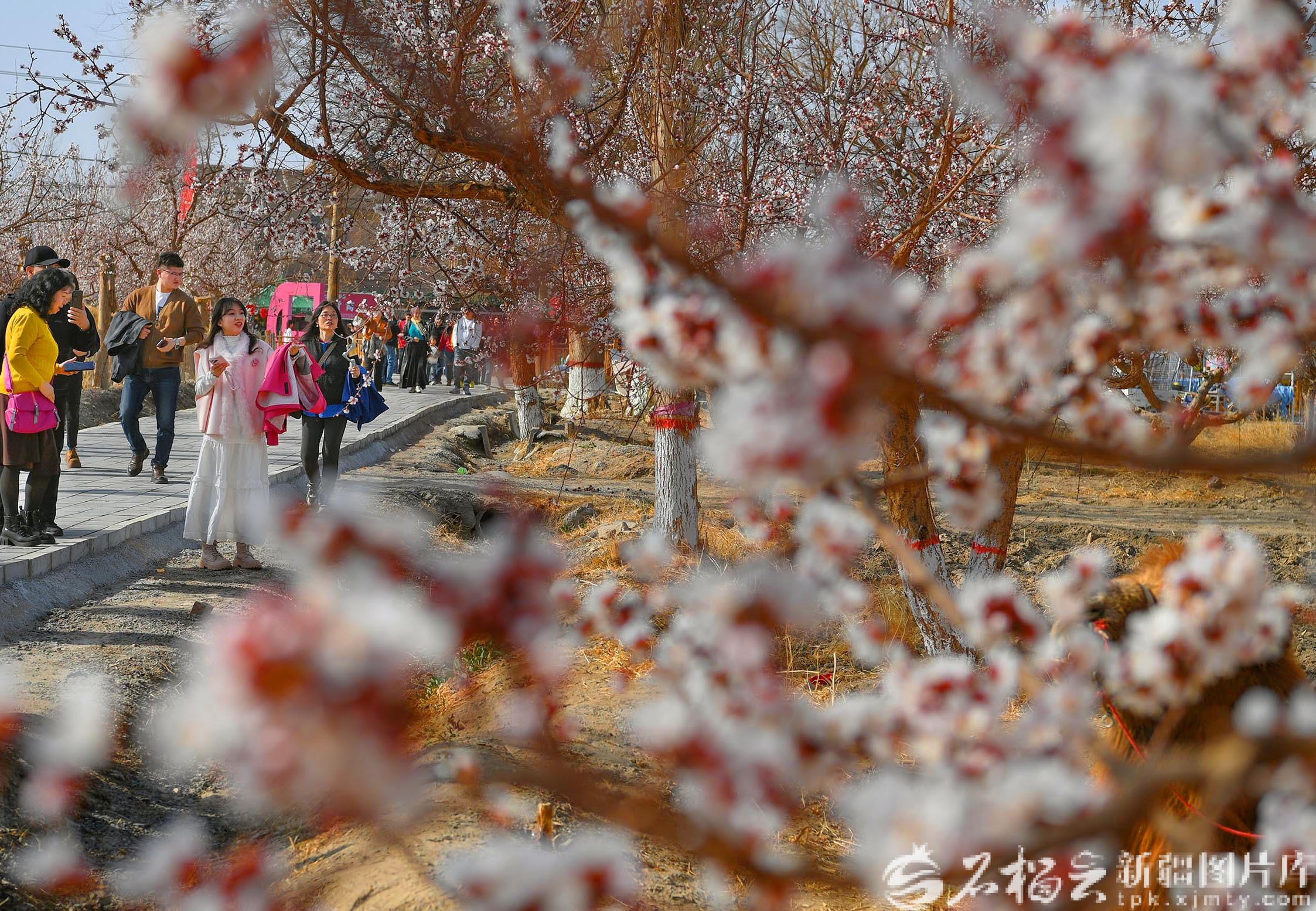 3月20日,马上有“杏”福——“新疆第一春·花开吐鲁番”2026吐鲁番杏花季文旅活动暨托克逊第九届杏花季活动,在托克逊县夏镇南湖村开幕。图为游客游园赏花。