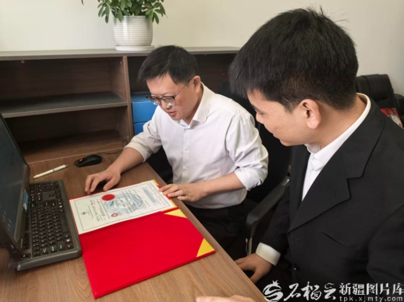 3月30日,新疆红旗坡农牧业投资发展集团有限责任公司的干部在浏览刚刚颁发的香港优质“正”印认证的证书。孙龙翔摄
