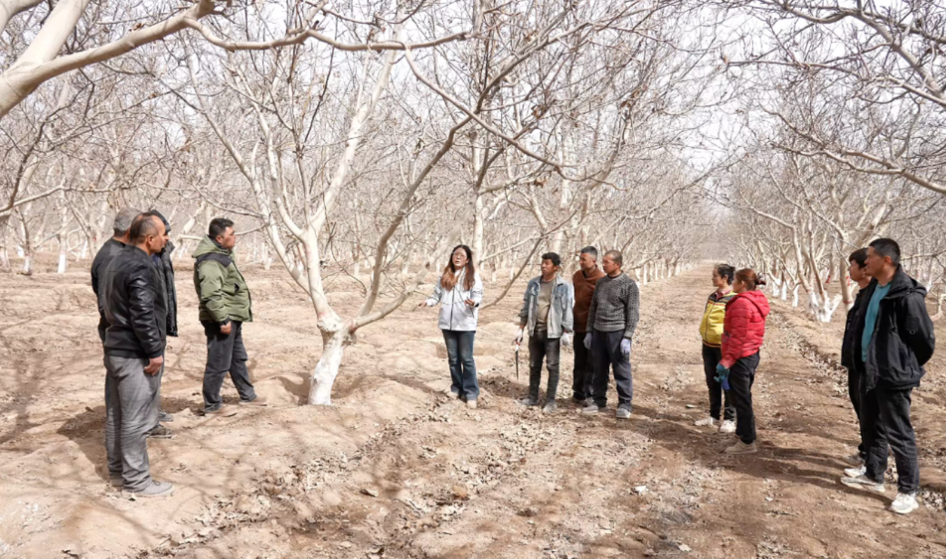林果春管关键期,拜城县以科技赋能林果业,筑牢县乡村三级技术服务体系,抓实一线技术指导。托克逊乡选派30余名农技员深入果园,通过“理论讲解+实操示范”的田间课堂模式,为果农点对点普及果树修剪、嫁接、精准施肥等实用技术,把管护要领讲透教懂。同时结合无人机智慧植保,提升作业效率、降低成本,破解林果管护难题。