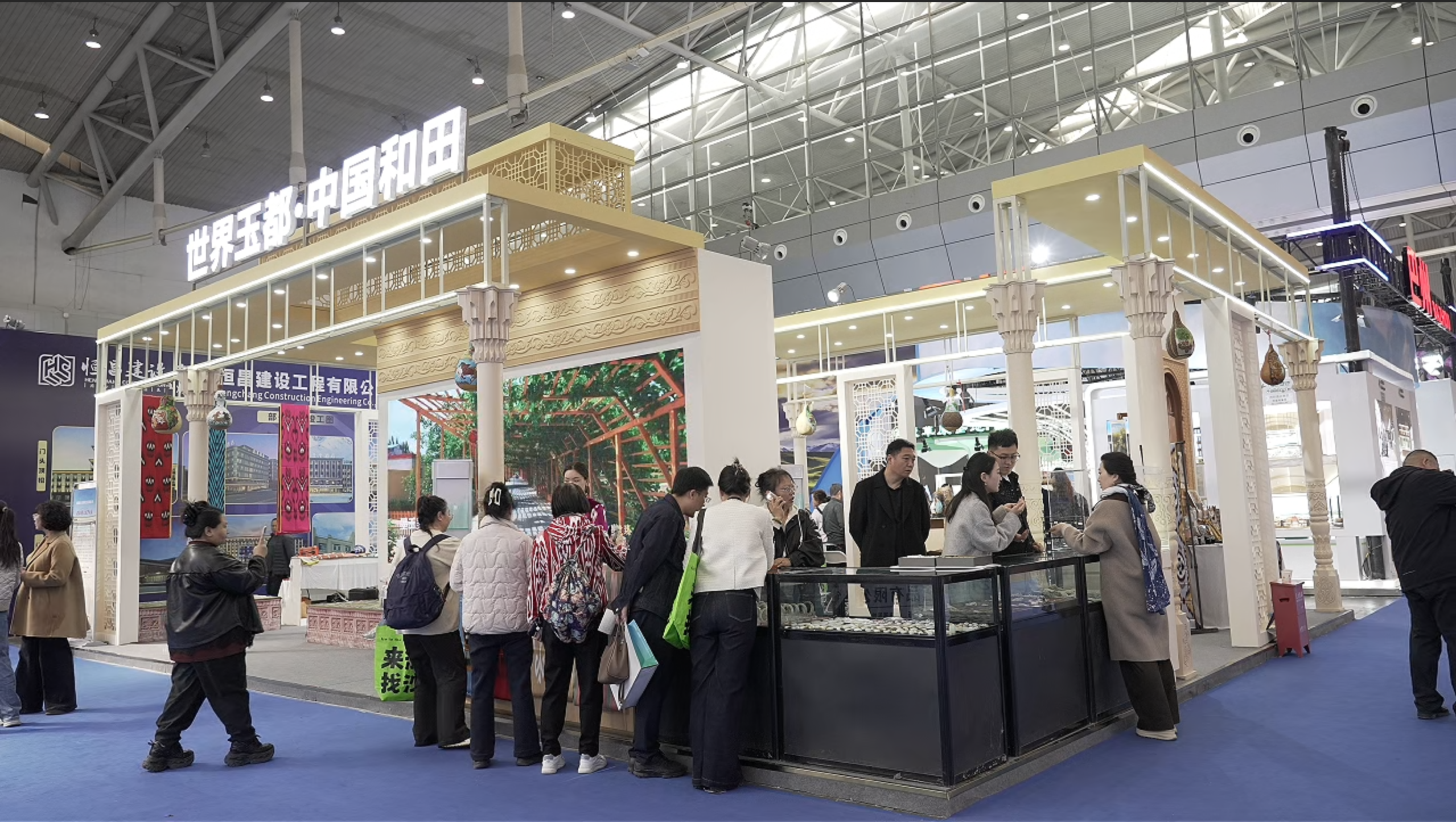 春博会上,和田地区“世界玉都·中国和田”文旅主题展馆集中呈现13家文旅企业带来的81种文旅产品,涵盖雕琢精美的和田玉、极具特色的“五星出东方利中国”文创产品、色彩斑斓的艾德莱斯绸、巧夺天工的根雕、香气浓郁的和田药茶等,通过特色文艺展演与实物展示相结合的方式,全方位展现了和田魅力与丰富文旅资源。