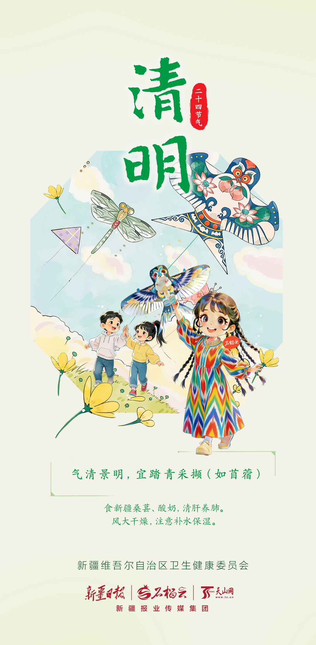 食新疆桑葚、酸奶,清肝养肺。风大干燥,注意补水保湿。