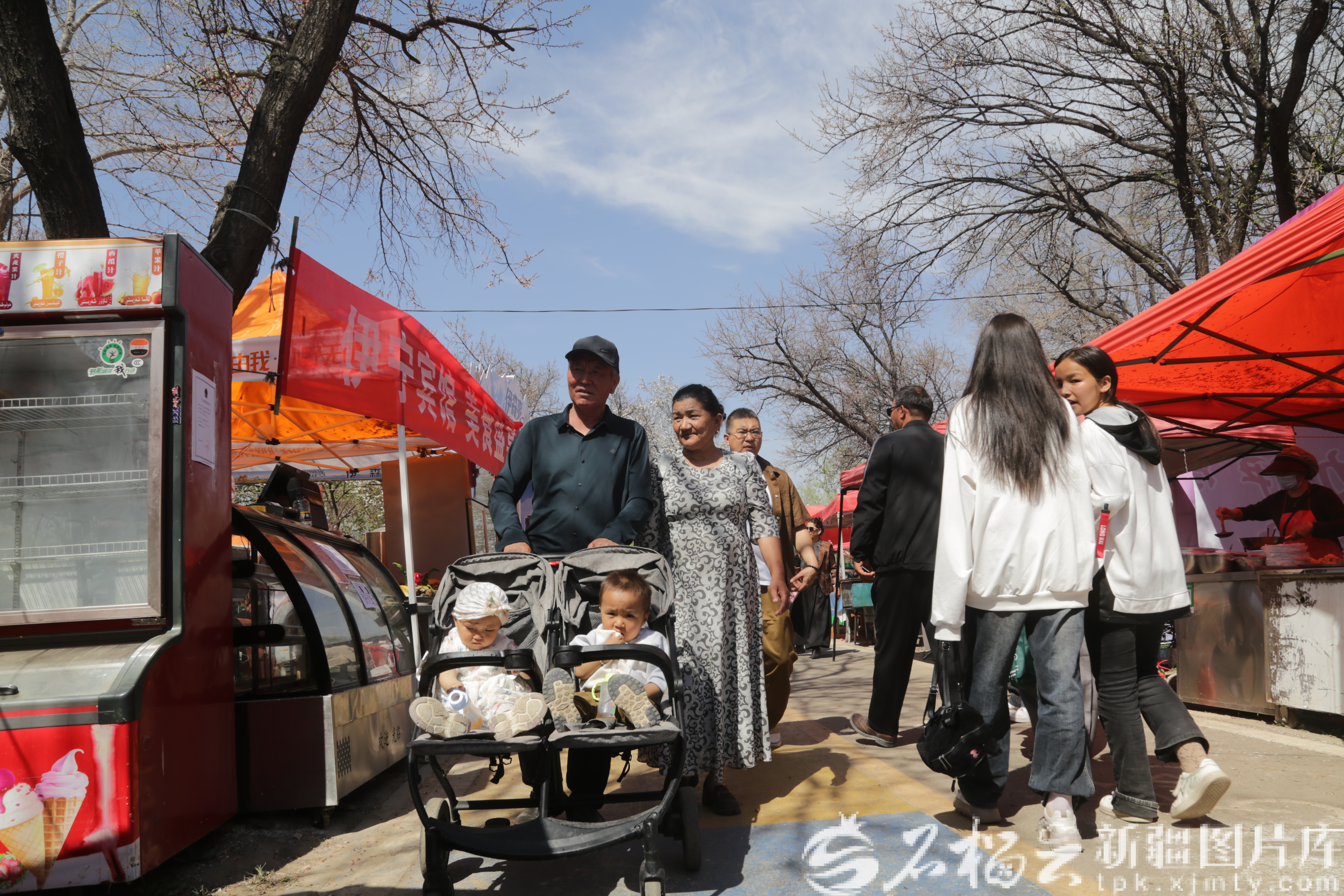4月4日,伊宁县第十五届杏花文化旅游季暨“魅力伊宁 和美杏乡”春季文化旅游推广活动启幕。图为当地群众漫步在杏花林特色展位前。天山网-新疆日报记者 宋卫国摄