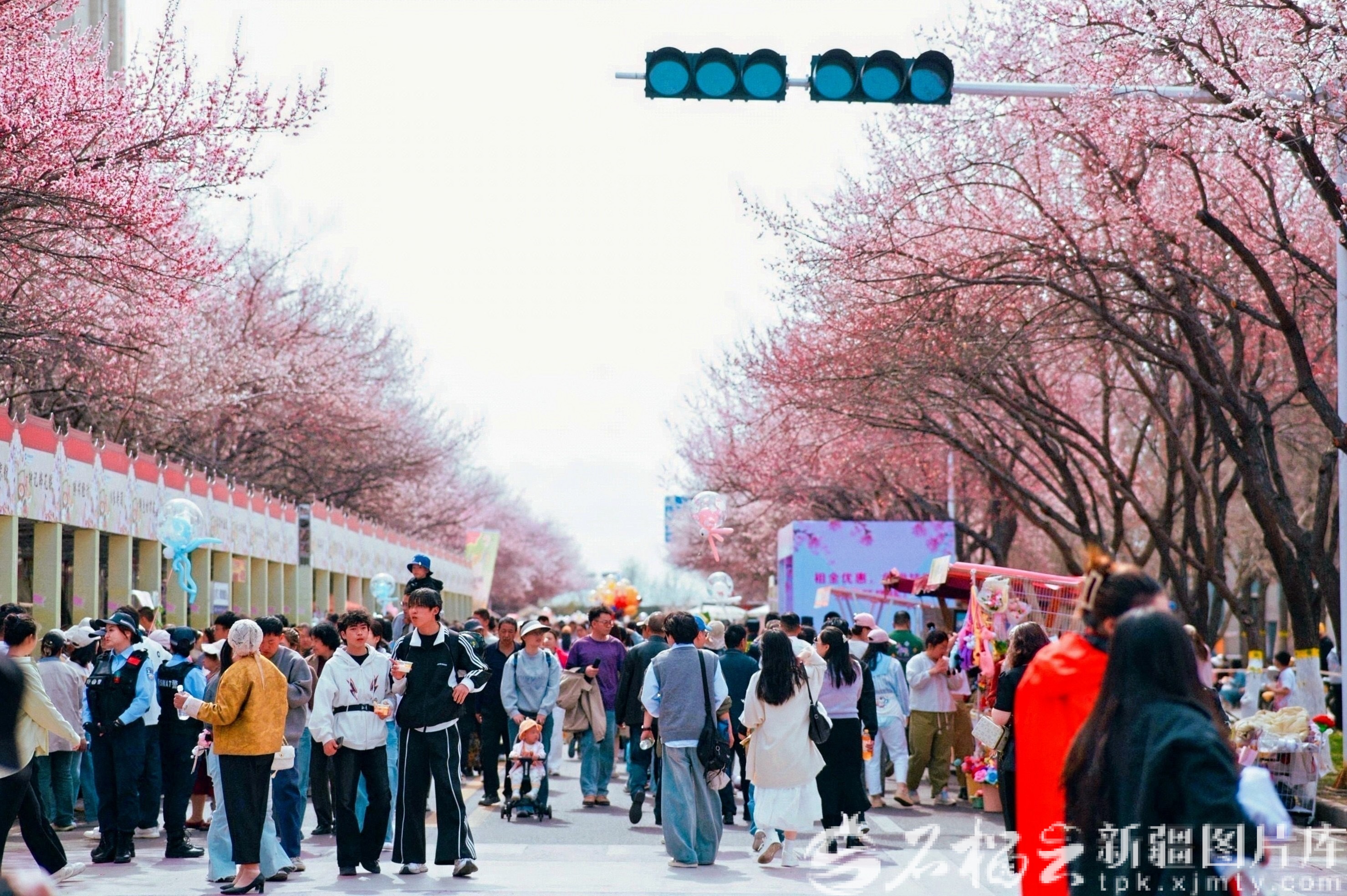 城市之中,春光同样动人。伊宁市海棠路作为热门赏花街区,道路两旁杏树、桃树竞相吐艳。自3月28日起,当地在此举办赏花活动,设置美食集市、文创百货集市、赏花区与互动区,让市民足不出城,便能拥抱烂漫春光,尽享家门口的诗意与烟火。