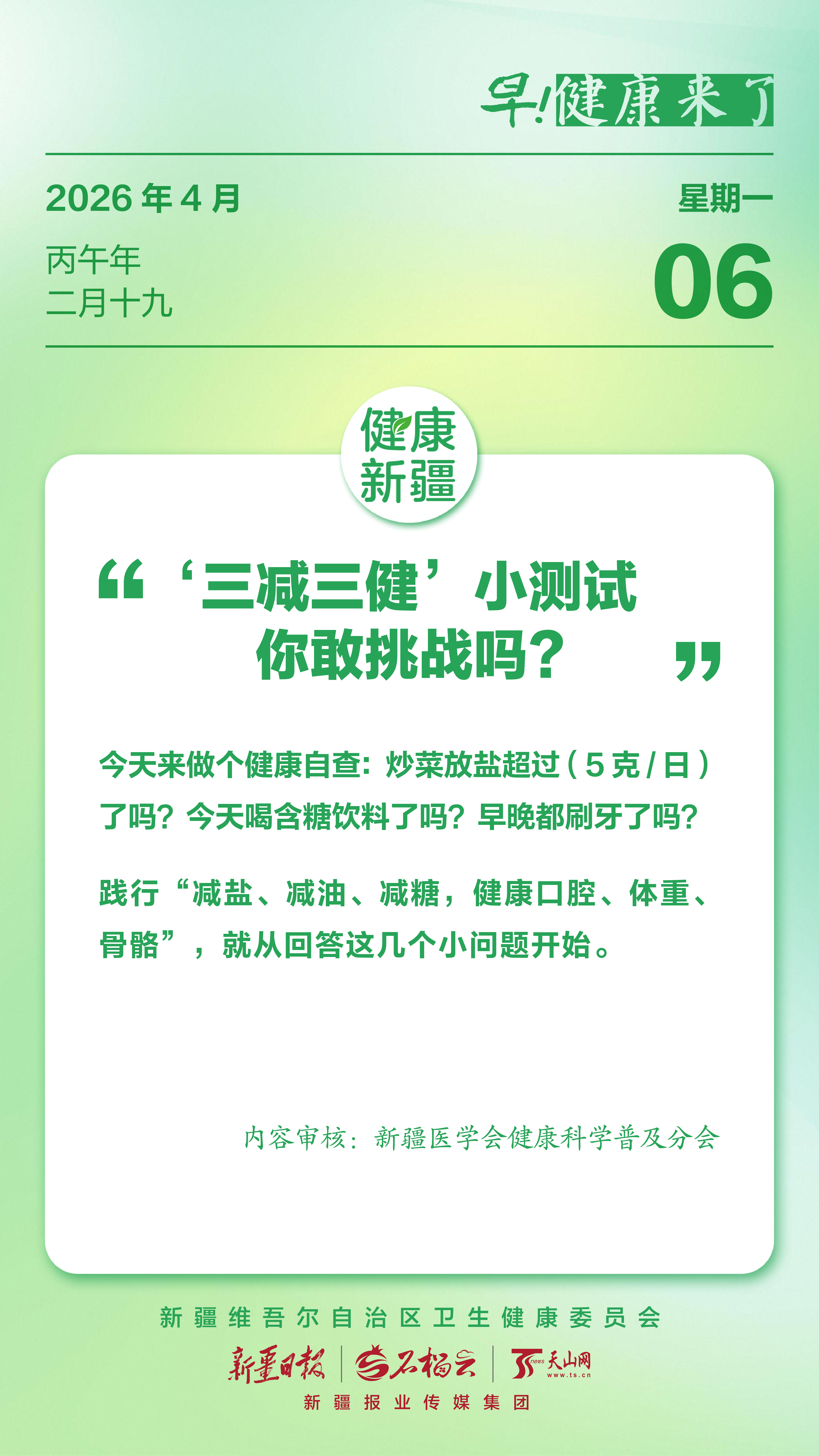 早!健康来了|“三减三健”小测试,你敢挑战吗?