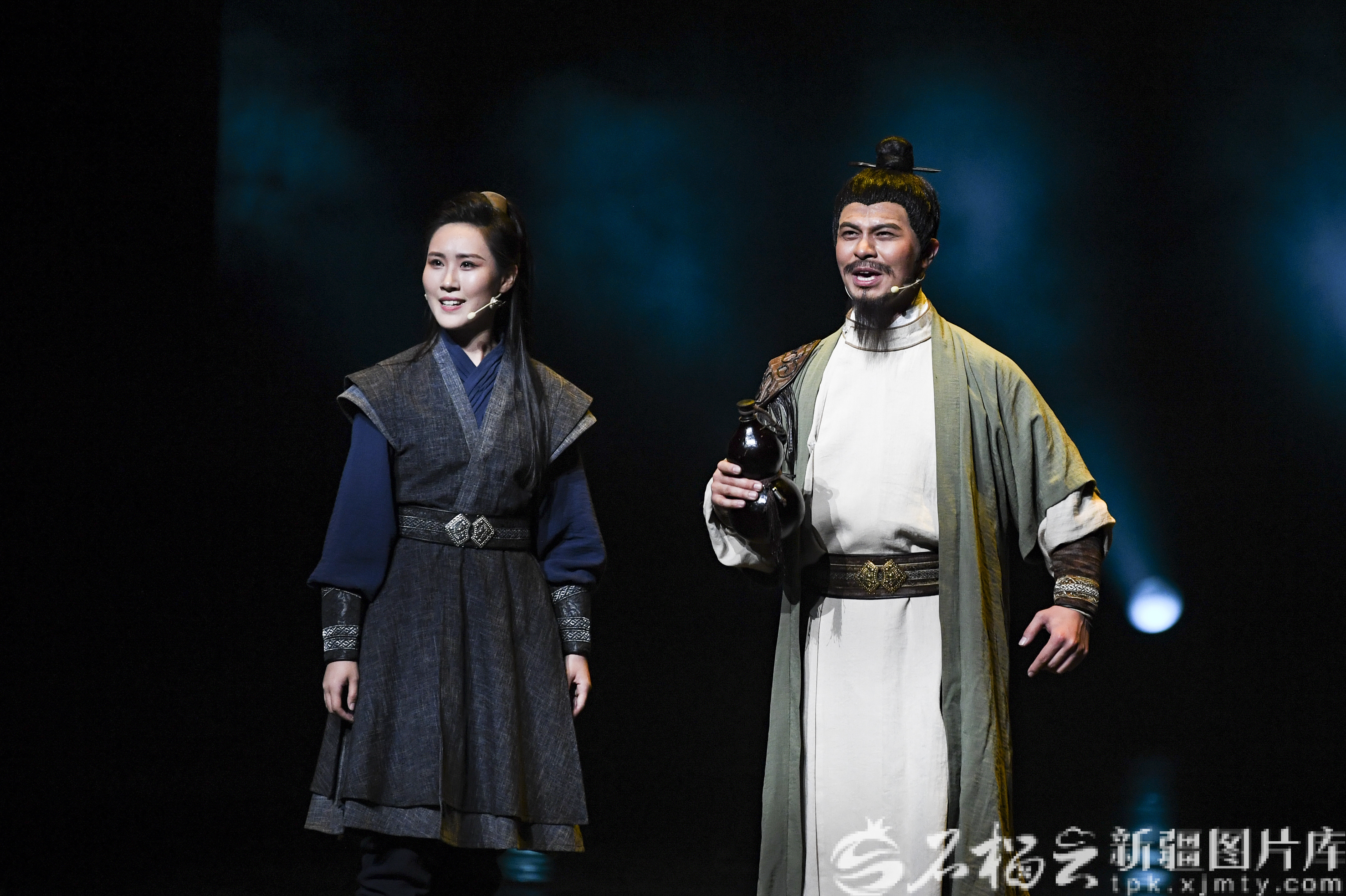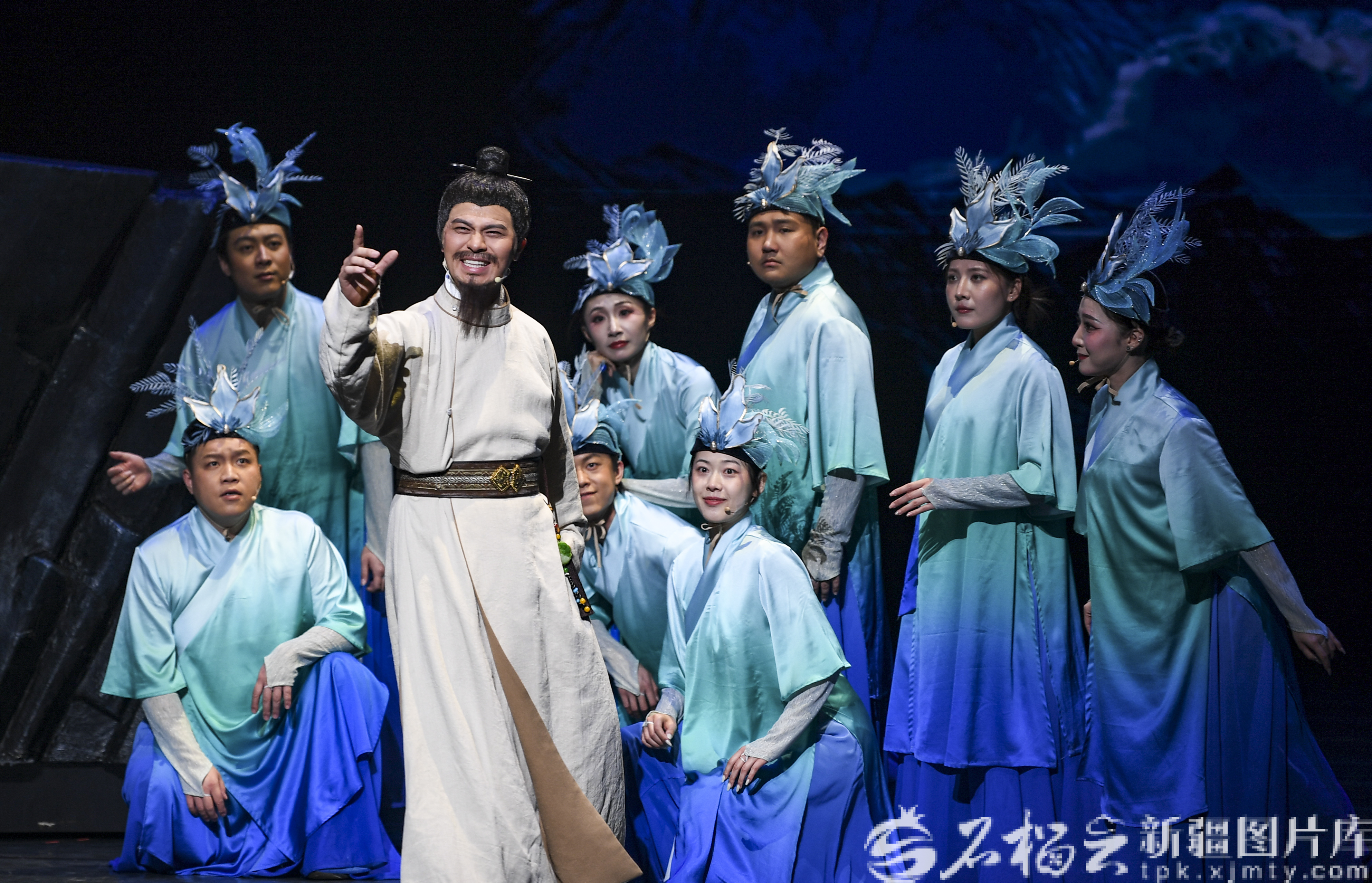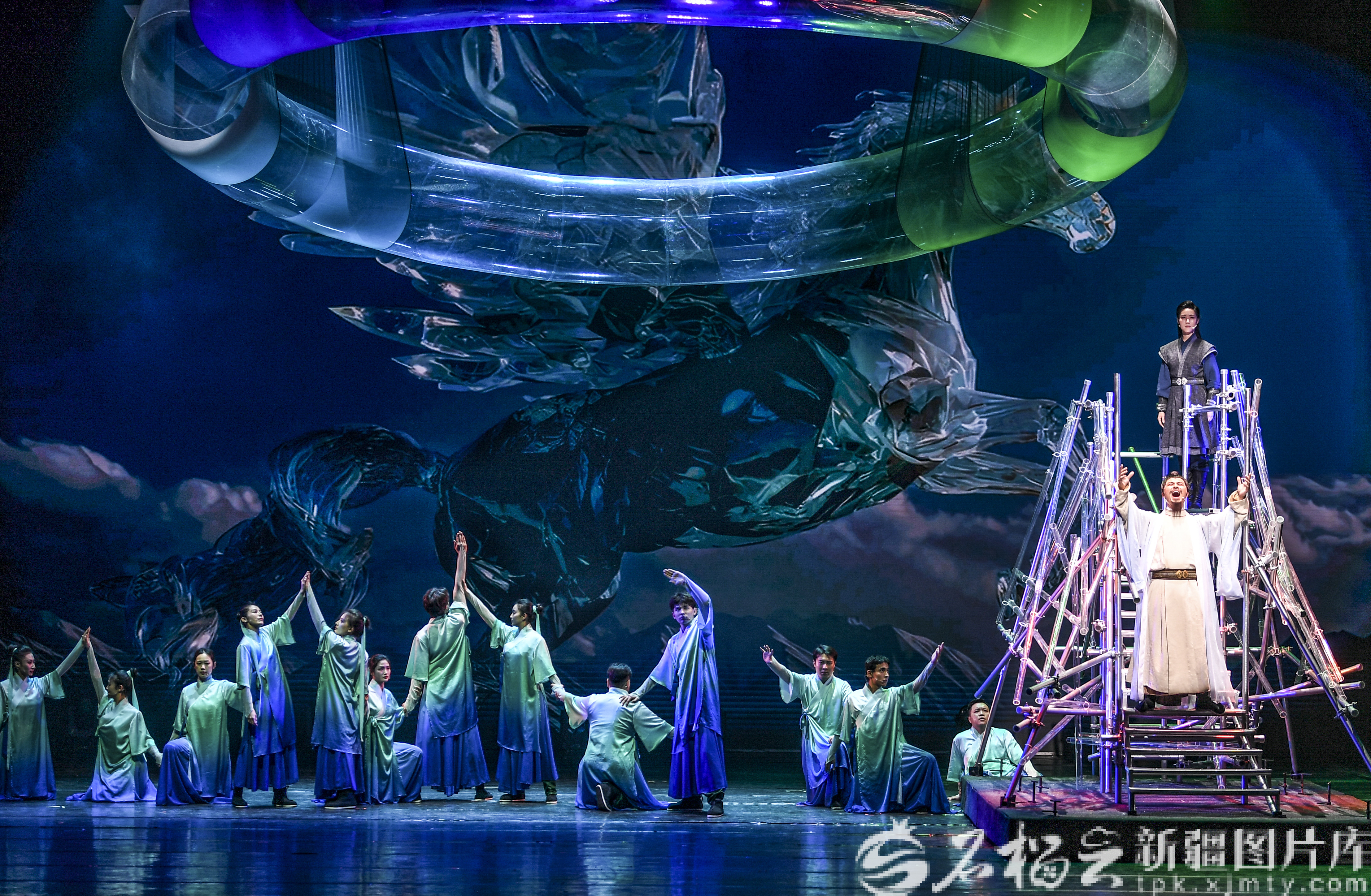 石榴云/新疆日报讯(记者 汤永摄影报道)4月5日晚,第四届新疆文化艺术节再掀热潮,原创音诗画作品《仗剑走昆仑·李白篇》在新疆艺术剧院剧场精彩上演。该剧由新疆艺术剧院话剧团倾情打造,将古典诗意与西域豪情相融,为观众献上一场震撼的视听盛宴。