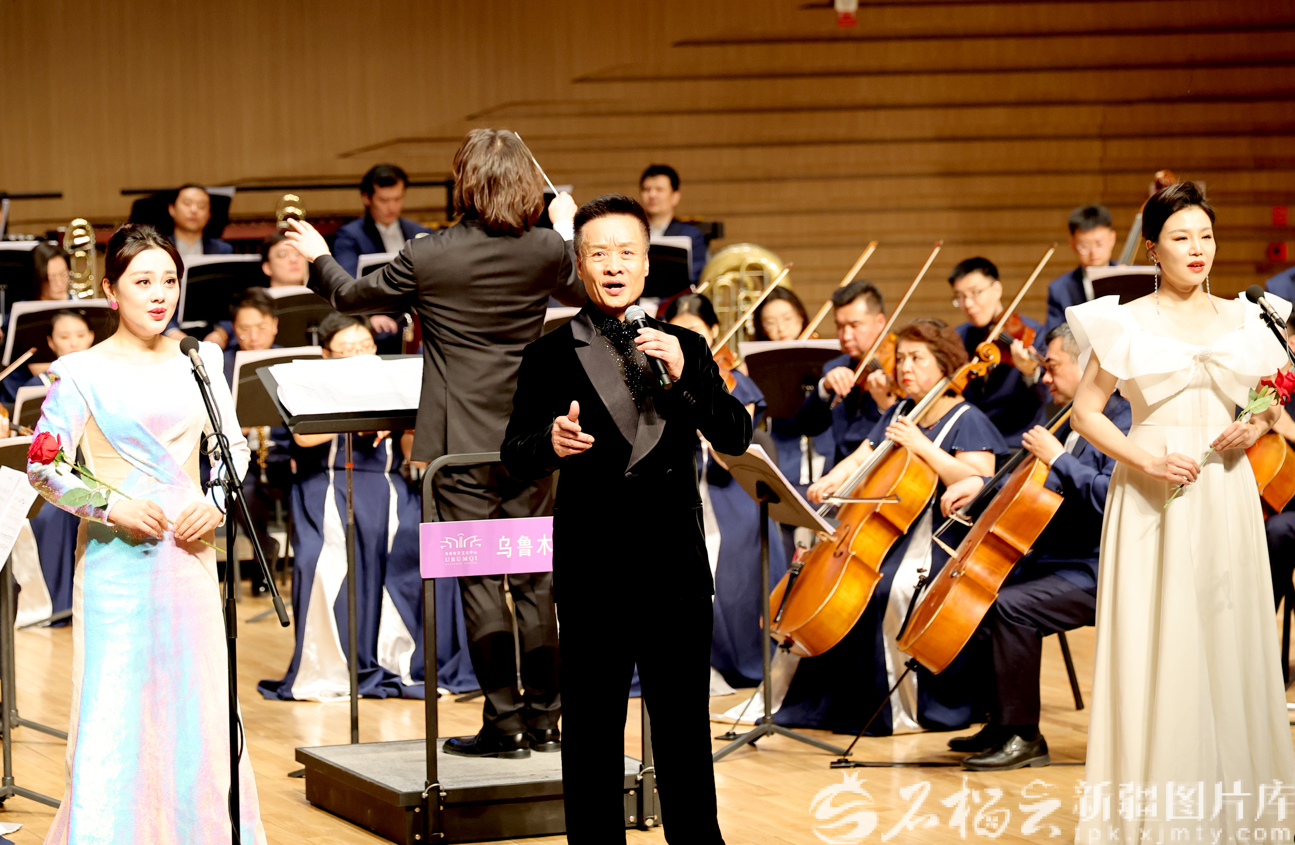 天山网-新疆日报讯(记者韩亮摄影报道)4月5日晚,作为第四届新疆文化艺术节优秀舞台展演的收官之作,“永远的小白杨”阎维文师生民族声乐音乐会在乌鲁木齐音乐厅上演。这场高水准的艺术盛宴以动人旋律传递家国情怀,为新疆各族群众带来了一场浸润心灵的视听享受。