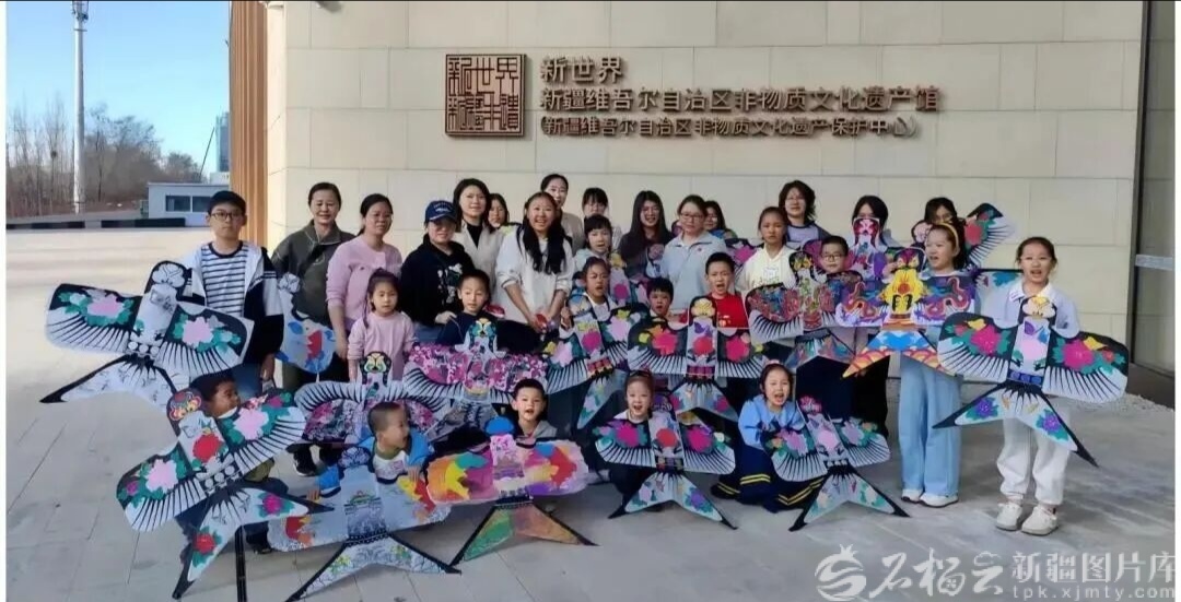 在新疆非遗馆,亲子家庭展示做的纸鸢。新疆非遗馆供图