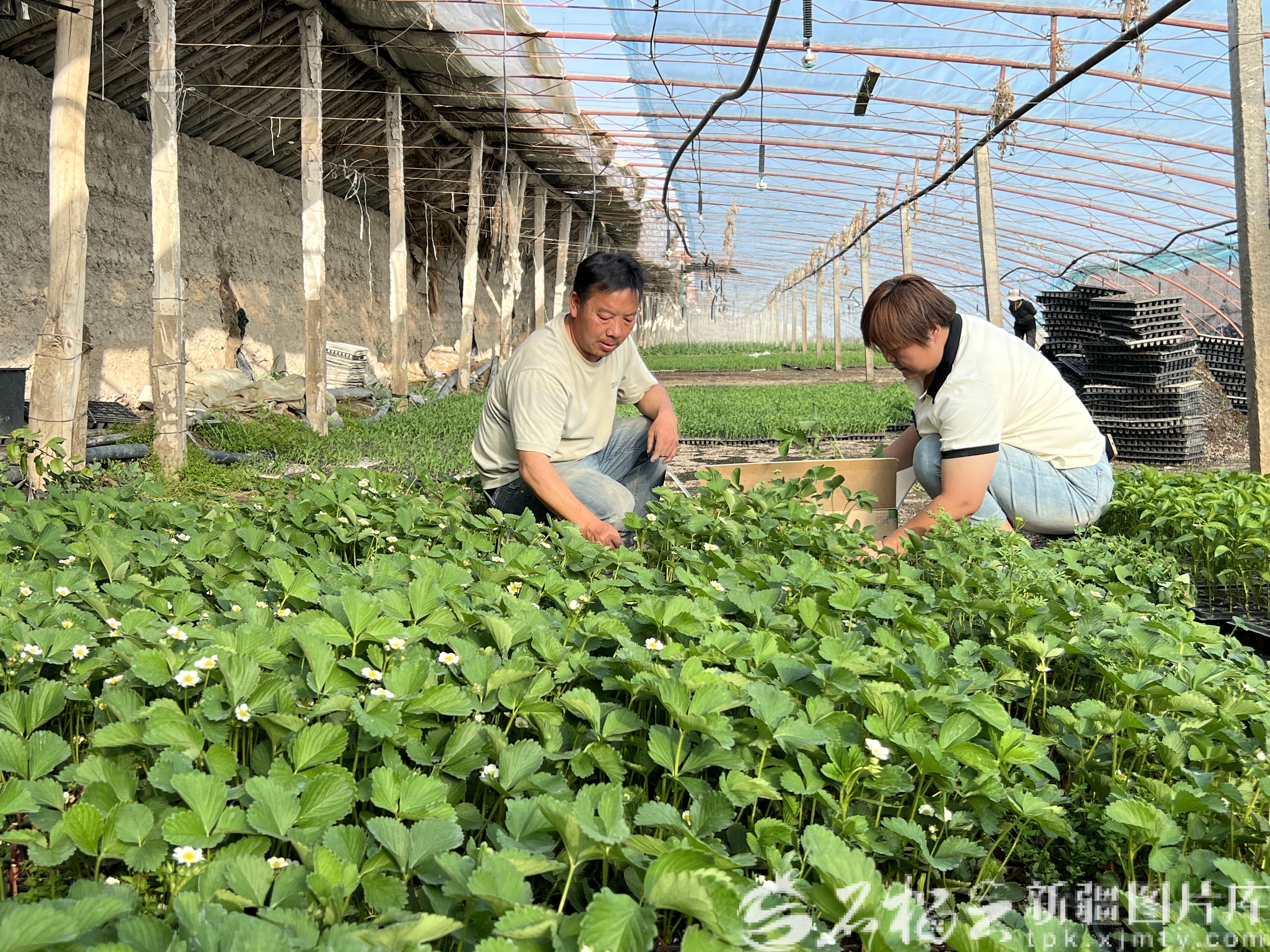 4月5日,和静县巴润哈尔莫敦镇阿日勒村种植户王建中(左)和妻子忙着将草莓苗装箱。天山网-新疆日报记者 白素君摄
