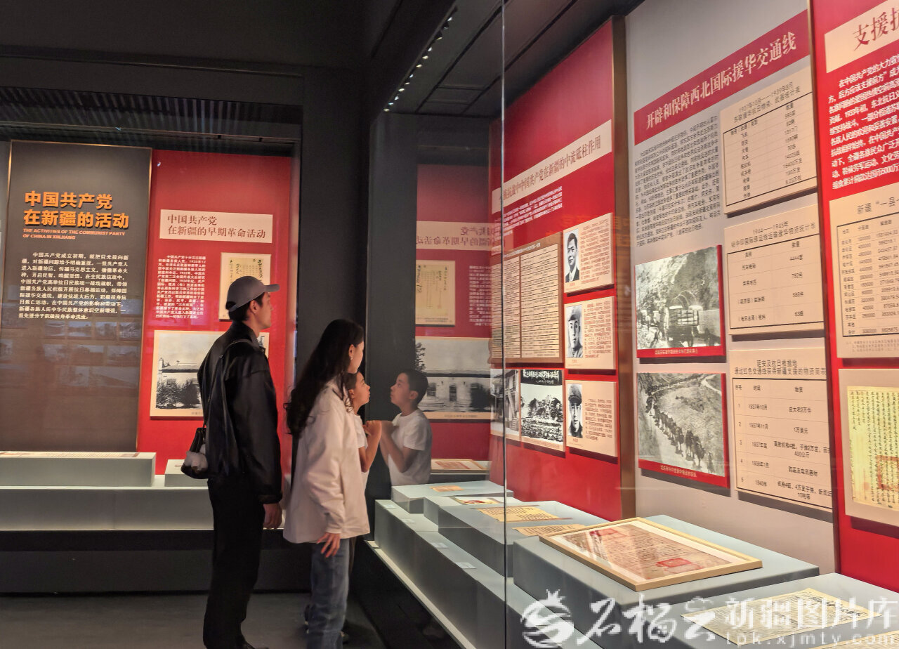 4月6日,家长带着孩子驻足新疆博物馆中国共产党在新疆的活动展区,在史料与老照片中,回望革命历史,汲取精神力量。