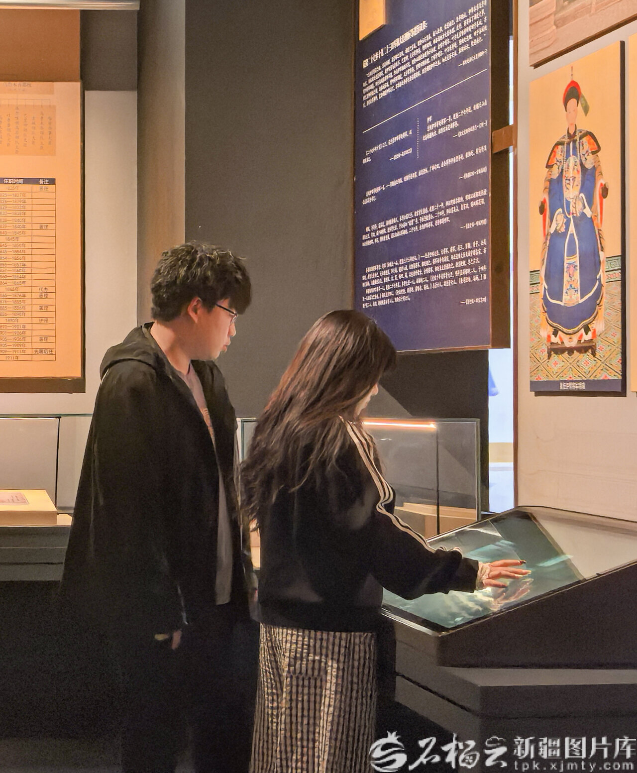 4月6日,清代新疆治理主题展区内女孩正伸手操作互动电子屏,通过数字化方式查阅、了解展区内的展品与历史信息。