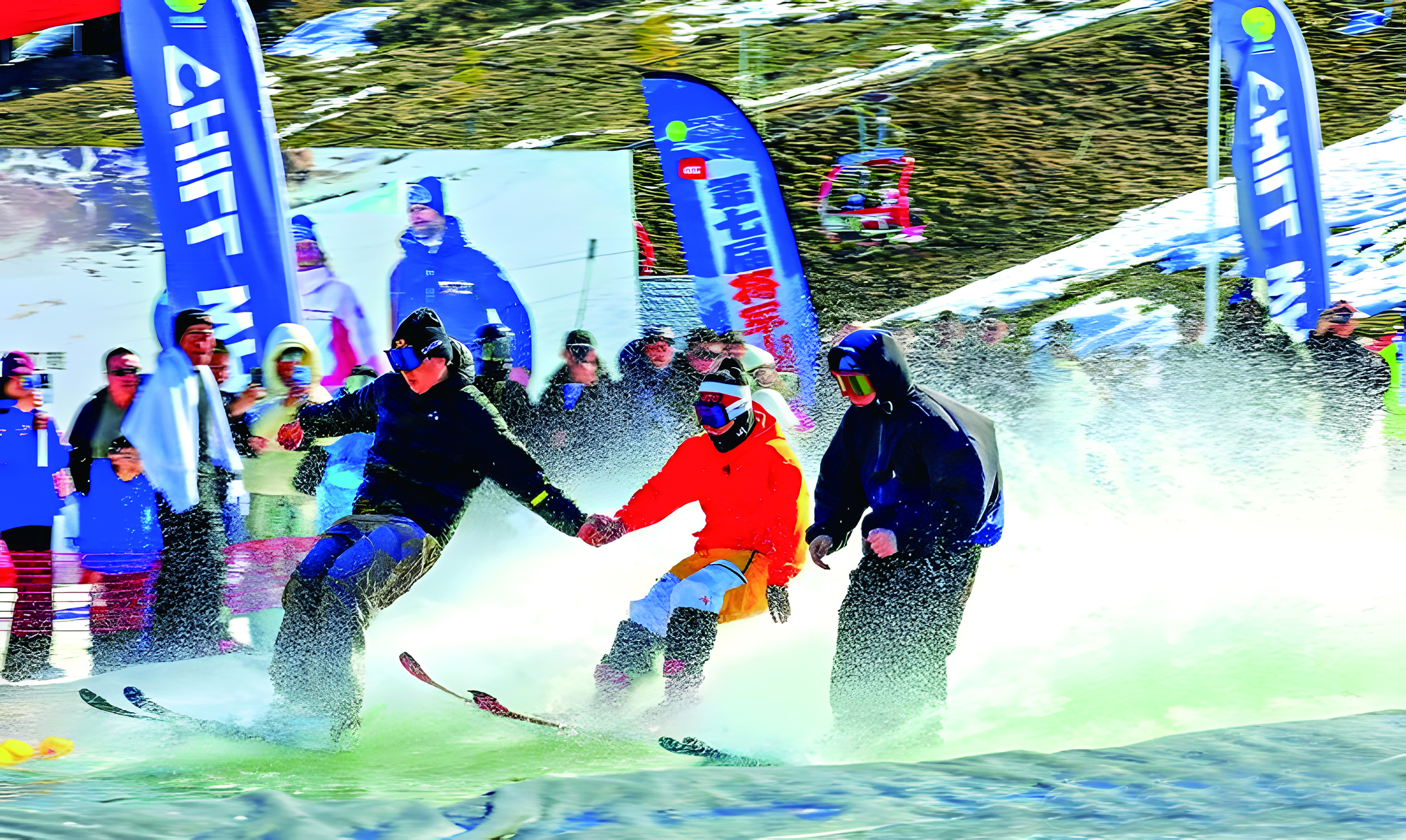 3月29日,雪友在阿勒泰将军山国际滑雪度假区滑水。当日,该度假区举办第七届趣味滑水节,告别雪季。阿尔达克·拜斯汗摄
