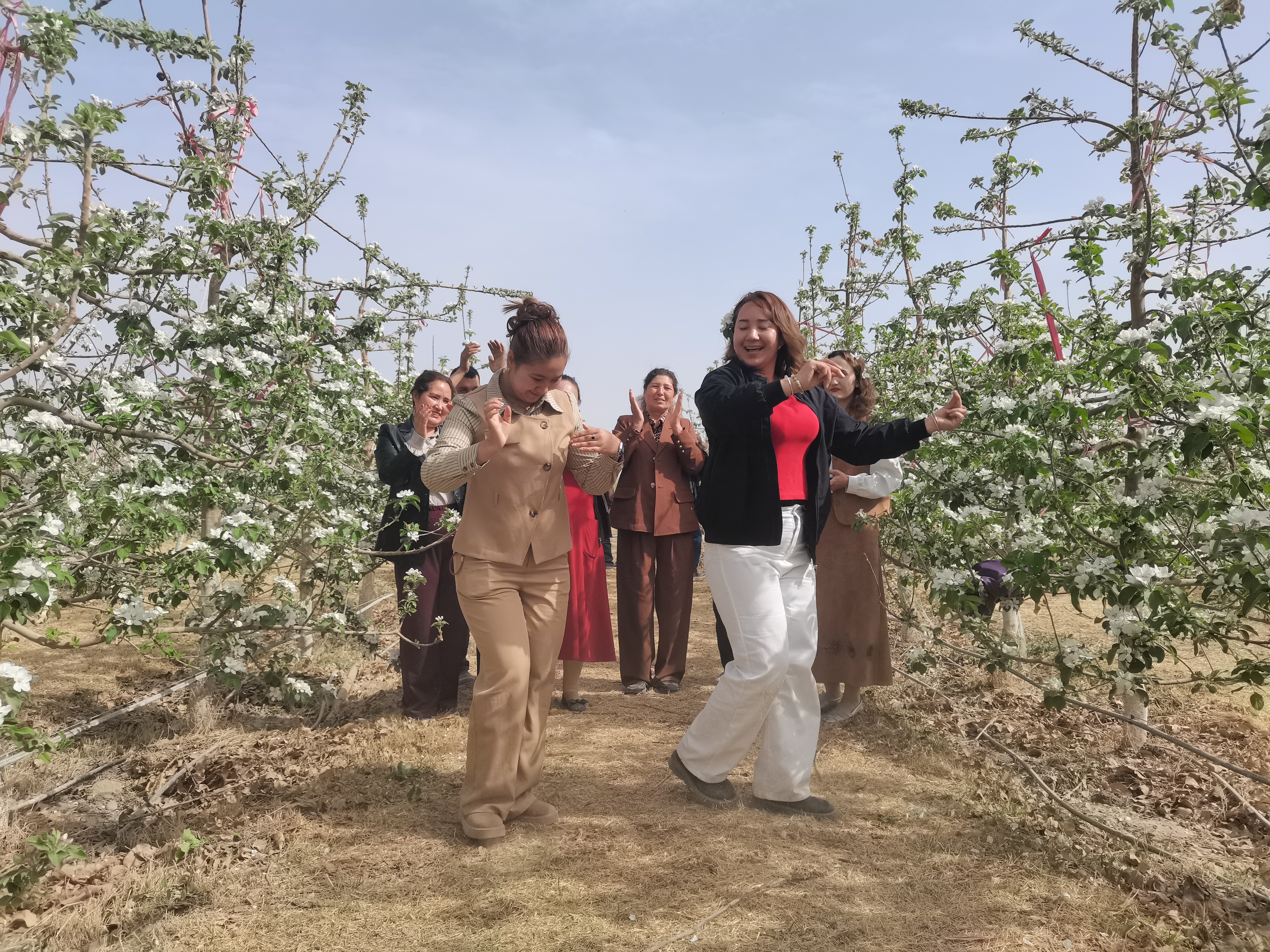 甘肃游客周晓露说:“现在的苹果花开得正好,很美,拍出来的照片也特别出片。一边赏花一边参加活动,心情特别舒畅。”