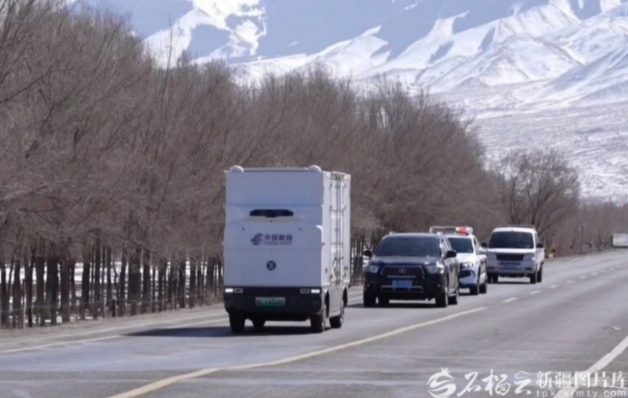 4月6日,奔跑在巴里坤县公路上的邮政智能无人车。胡尔曼别克摄