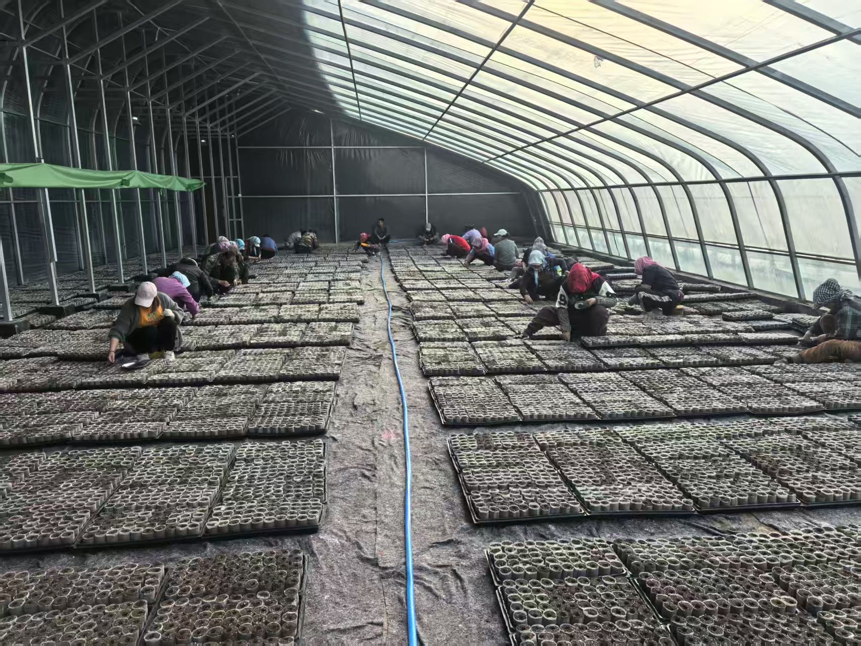 此前,野生软紫草自然繁殖率不足5%,传统人工种植出苗率也仅为10%到30%。在农业农村部门的帮扶与技术指导下,新疆紫南山农业科技有限公司在六十户乡大梁村的4个温室大棚内,成功开展新疆软紫草规模化育苗试种。经科学监测,本次试种出苗率超过50%,创下该物种人工繁育的新纪录。