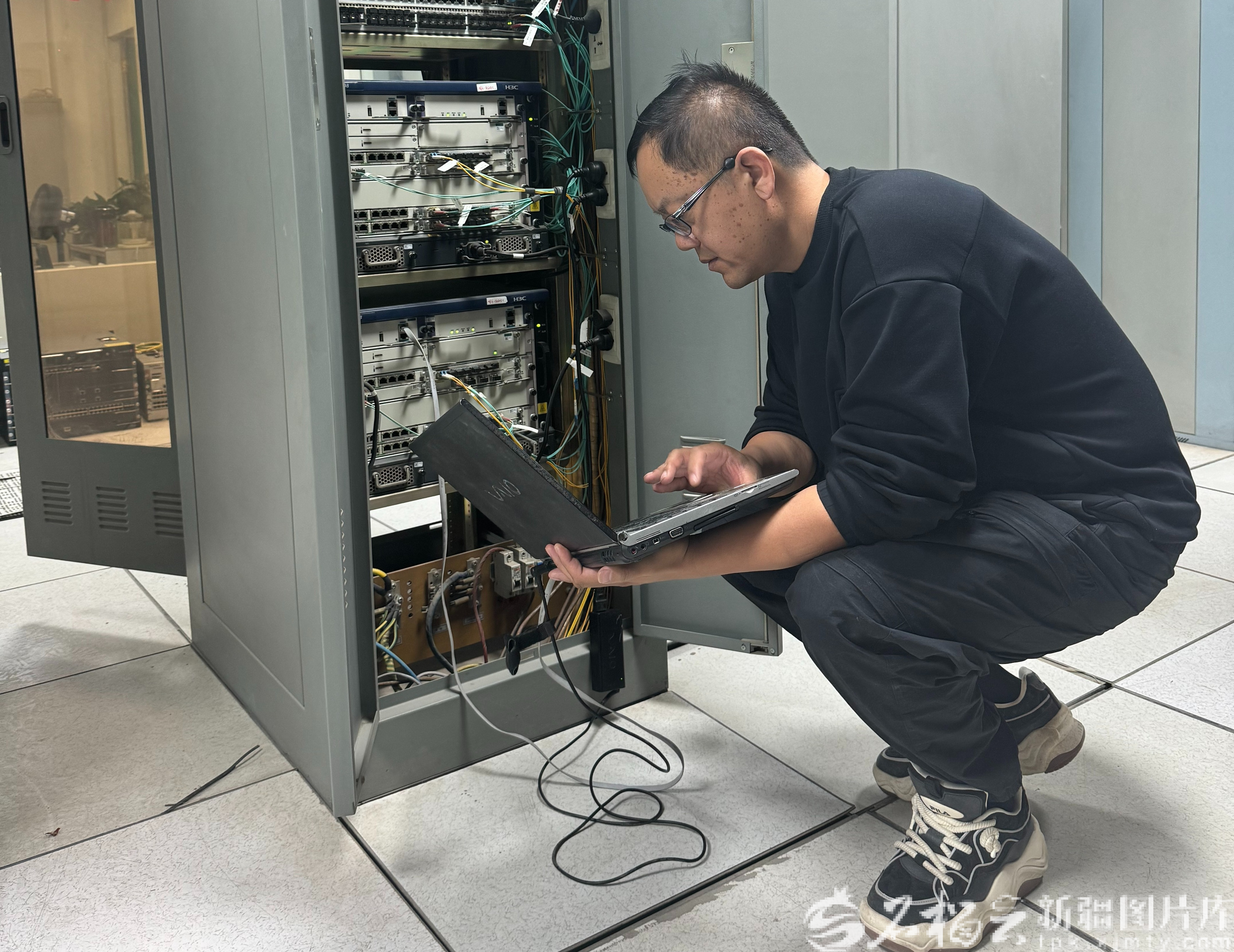 9日,李长庚在进行网络故障测试。本人供图