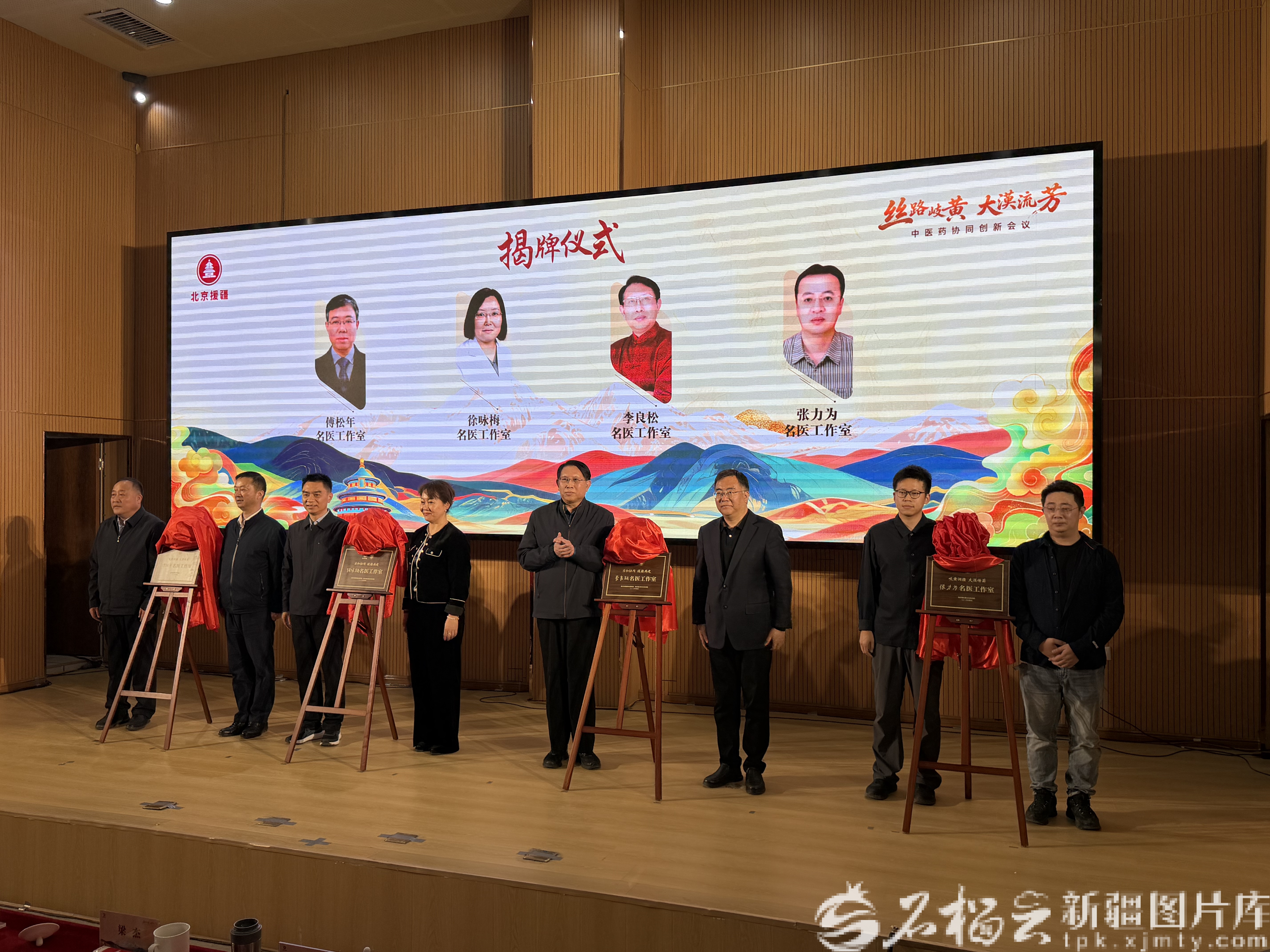 4月11日上午,“丝路岐黄·大漠流芳”中医药协同创新大会在和田开幕。图为名医工作室揭牌。天山网-新疆日报记者 拍热扎提·阿不都摄