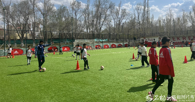 城市的另一边,乌鲁木齐天山公园里更是一派热闹景象。一群小学生在公园里的室外足球场地踢着足球,奔跑、传球、射门,小小的身影灵活穿梭,脸上满是纯粹的笑容。不远处的步道上,几位银发老人伴着微风缓缓散步,有的并肩闲谈,有的舒展着胳膊腿脚,享受着午后的惬意时光。