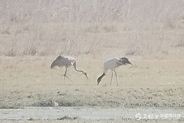 “高原精灵”黑颈鹤首现柴窝堡湖湿地