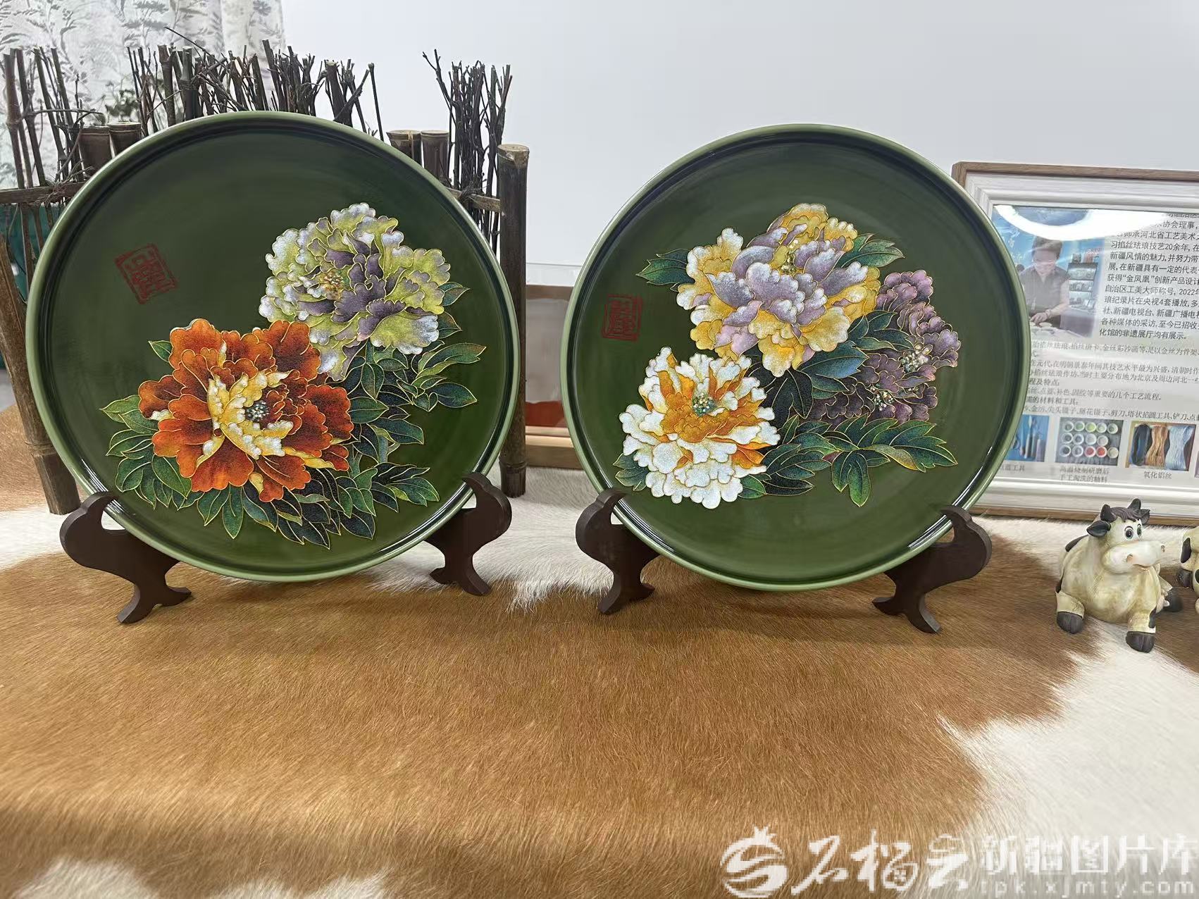 李华创作的以牡丹为主题的掐丝珐琅作品。本人供图